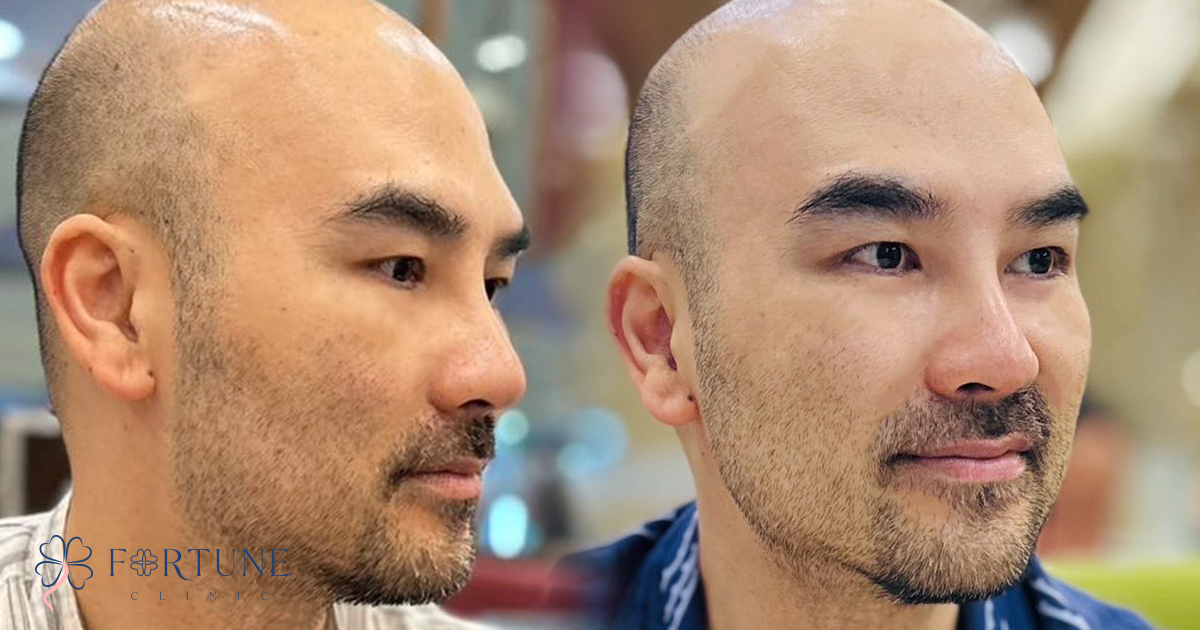 เดิมคนไข้มีสันจมูกโด่งอยู่แล้วค่า แต่ต้องการปรับแต่งทรงให้สวยคมมากขึ้น  และต้องการให้ปลายจมูกเดิมที่ดูงุ้ม พุ่งขึ้นเล็กน้อย  ในครั้งแรกหมอเฉลิมจึงได้เสริมแบบไม่ใช้ซิลิโคน (แบบไม่ใช้ซิลิโคนสันจมูกจะไม่โด่งขึ้น) โดยใช้การตอกฐานกระดูก เพื่อให้สันจมูกคมสวยยิ่งขึ้น  และปรับแต่งปลายให้เป็นมิติพุ่งสวยขึ้น ด้วยเนื้อเยื่อเทียม