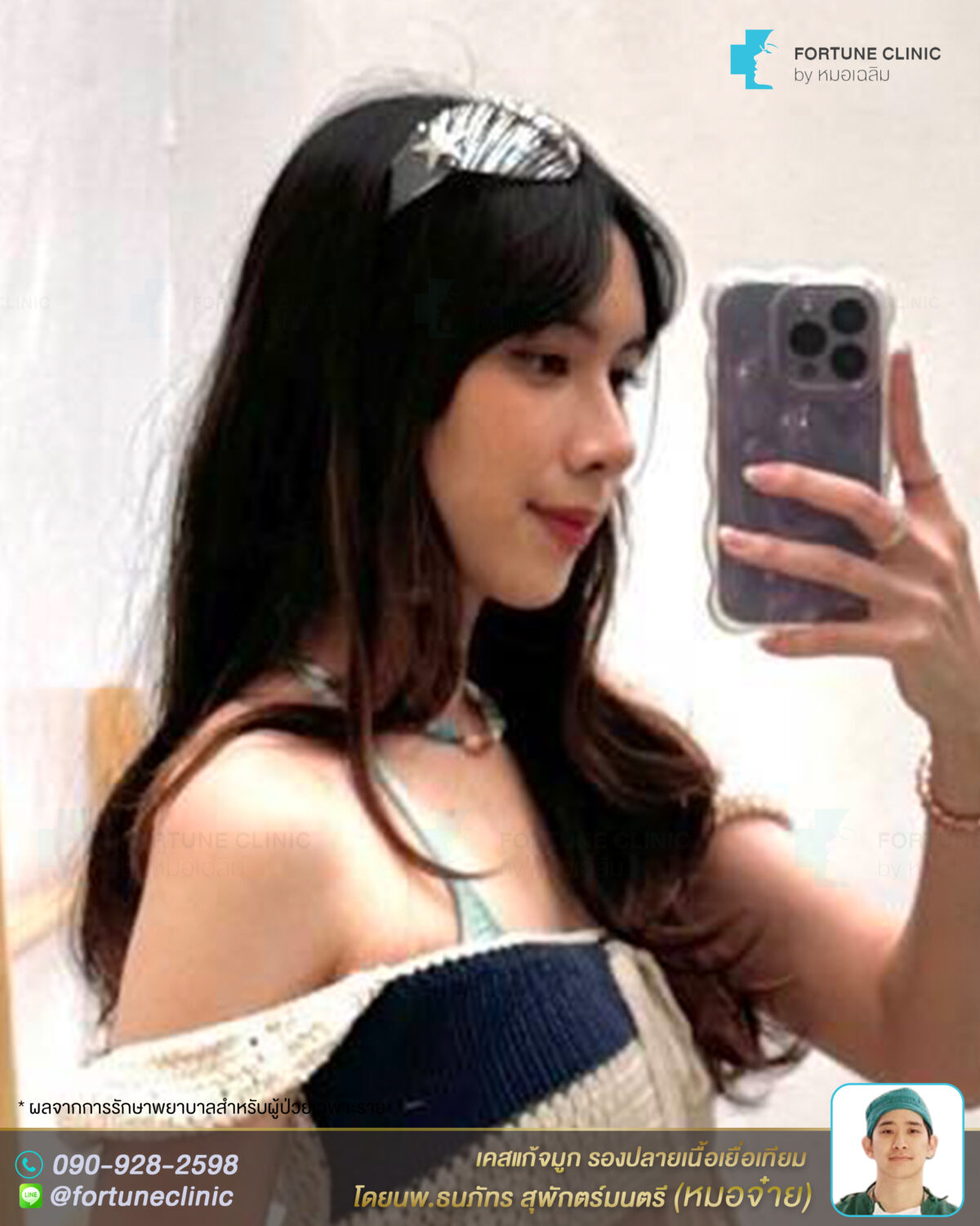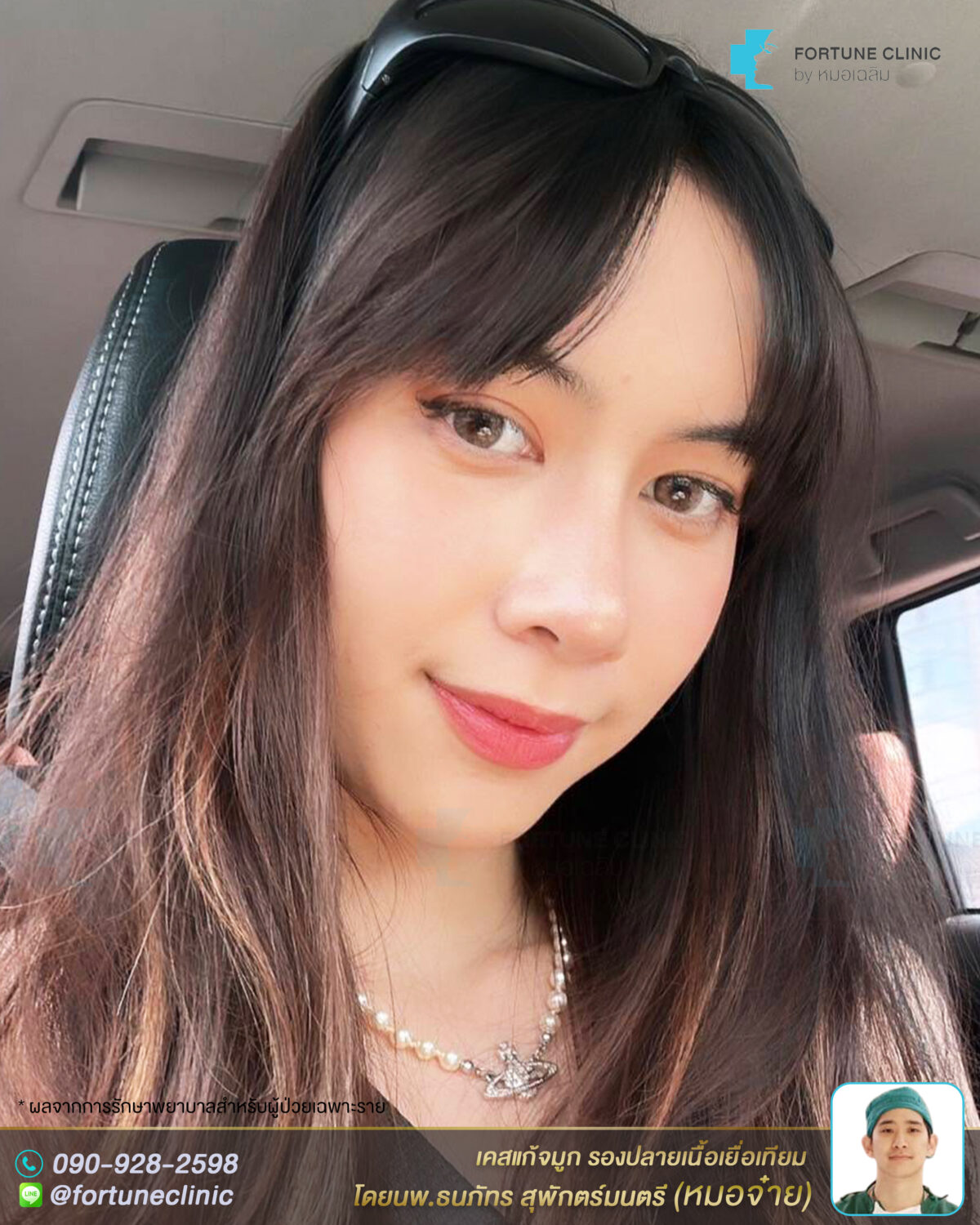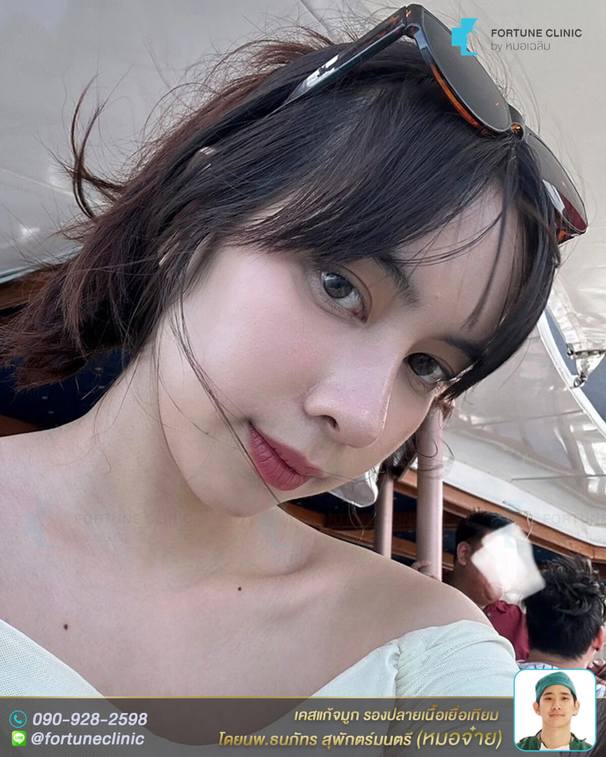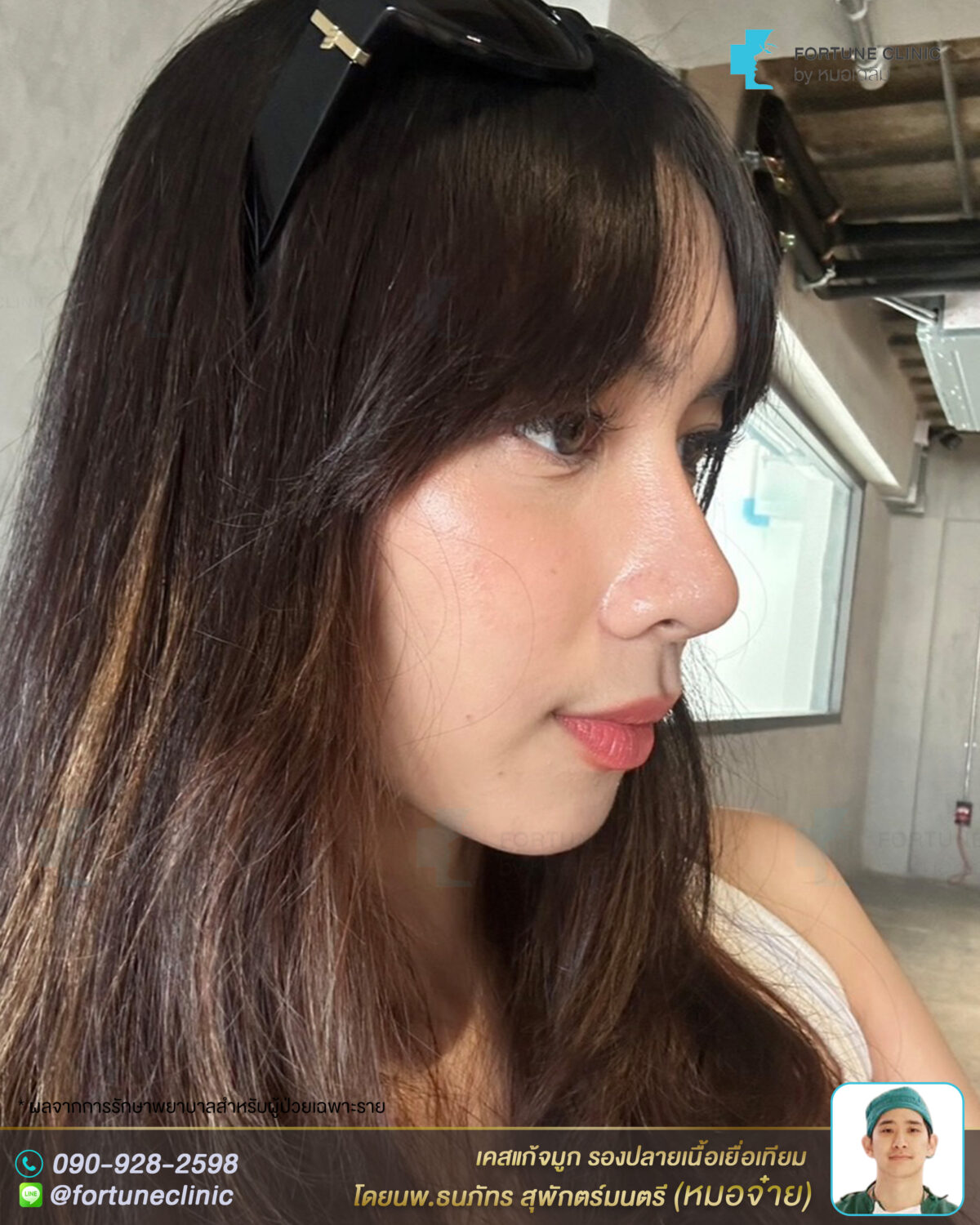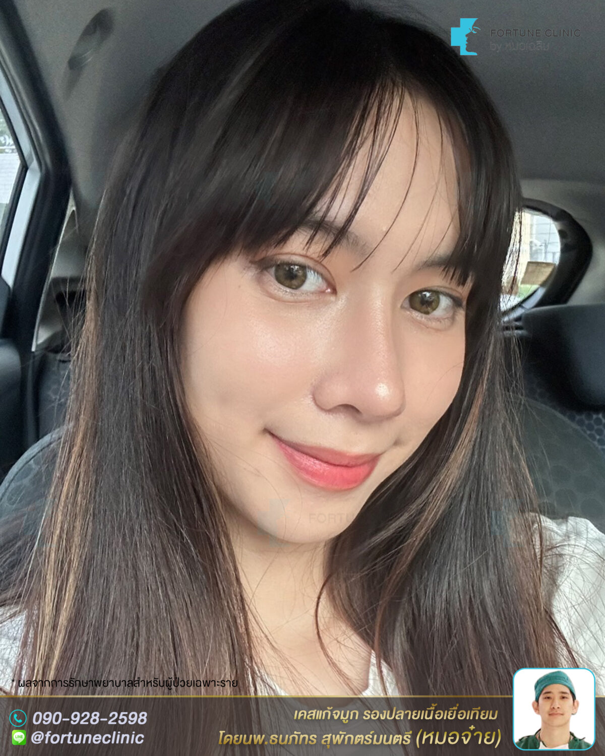 หลังแก้จมูก สวยพุ่งเนียน ดูฝรั่งมากค่า จากทรงแข็งทื่อ ดูหวานละมุนเป็นธรรมชาติขึ้นมาก สันหัวตาสวยเนียนขึ้น ไร้ร่องรอยต่อซิลิโคน สันจมูกเรียวโด่งคม ปลายจมูกเรียวเล็กลง มิติพุ่งสวย ไม่บางใสแล้วค่า ปีกจมูกเรียวกระชับสวยขึ้นจากการเสริมยกปลาย รูปหน้าดูเรียวสวยขึ้น ลุคสวยคุณหนู ดูเหมือนสาวลูกครึ่งเลยค่า