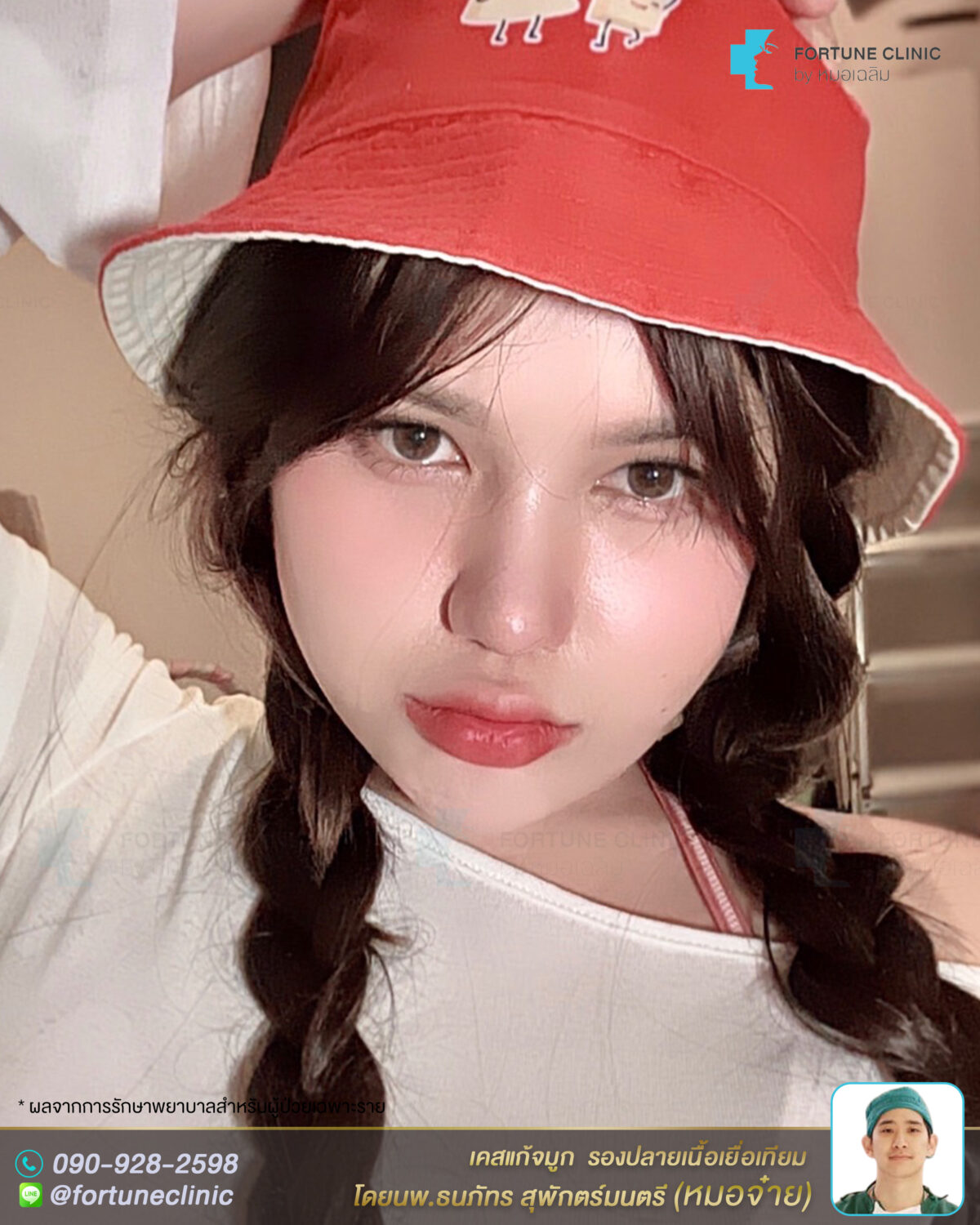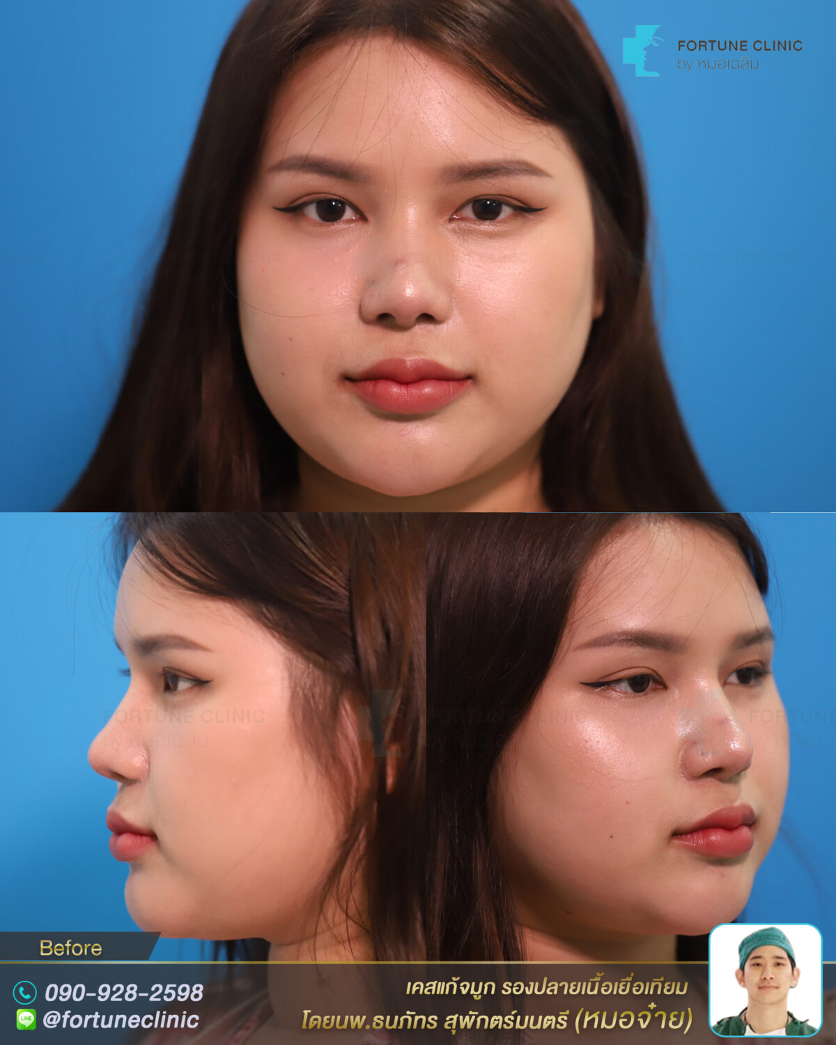 เดิมเคยเสริมจมูกมาก่อน แต่ปลายแดงบาง สันเริ่มบาง ทรงดูคมและแข็งเกินไป หัวตาเว้าลึกหักเป็นมุม