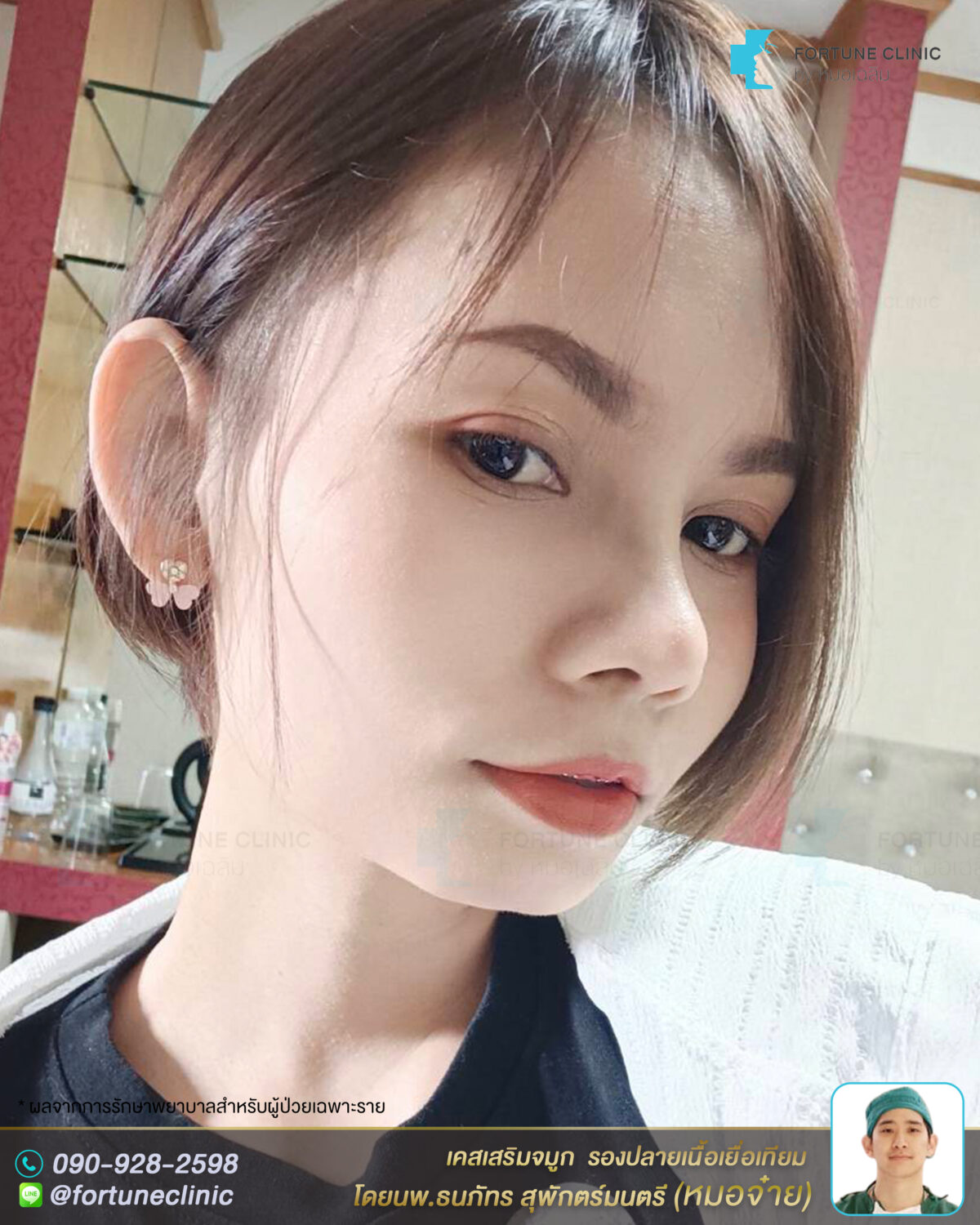 หลังเสริม หน้าคมสวยขึ้นมากค่า สันจมูกโด่งคม เรียวสวย จมูกดูเรียวยาวขึ้น หัวตาเป็นสโลปหวานเนียน ปลายจมูกยกพุ่งเป็นธรรมชาติ ปีกจมูกเรียวกระชับสวยขึ้น รูปหน้าดูเรียวสวยสมดุลขึ้น หน้าดูหวานละมุนขึ้นเลยค่า