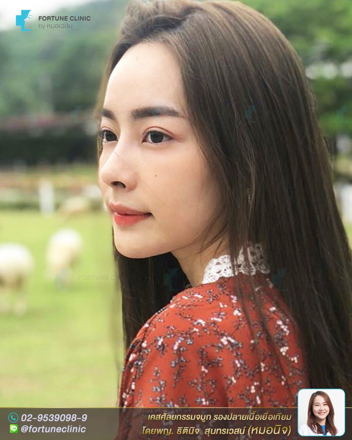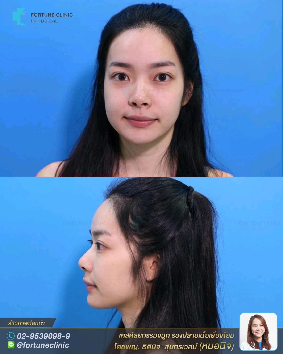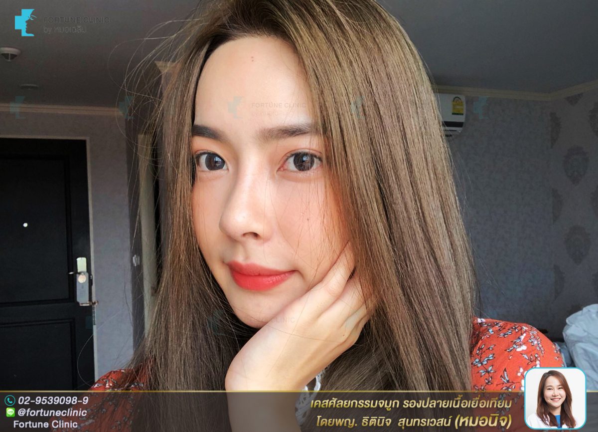 หมอนิจวิเคราะห์แล้ว เนื่องจากคุณเจนี่มีหน้าผากและคางที่สวยได้รูปอยู่แล้ว องศาและมิติทำจมูกทรงสโลปปลายพุ่งจะสวยมากค่า