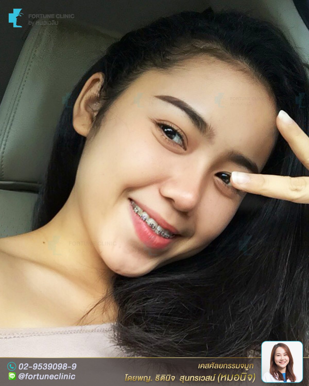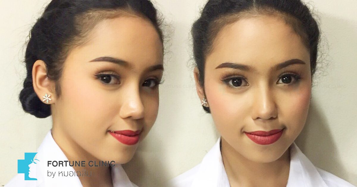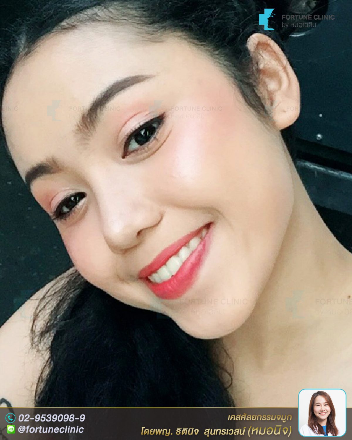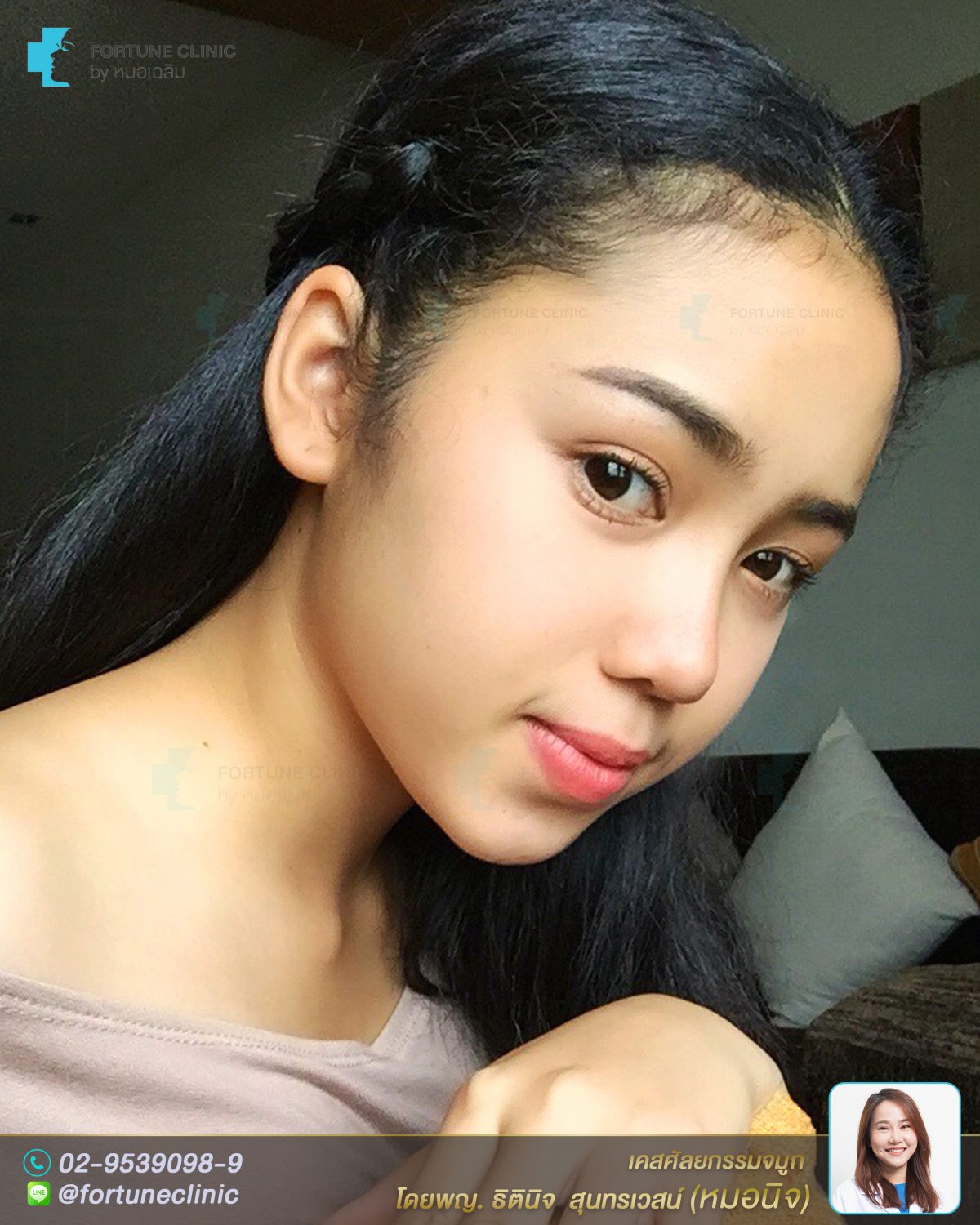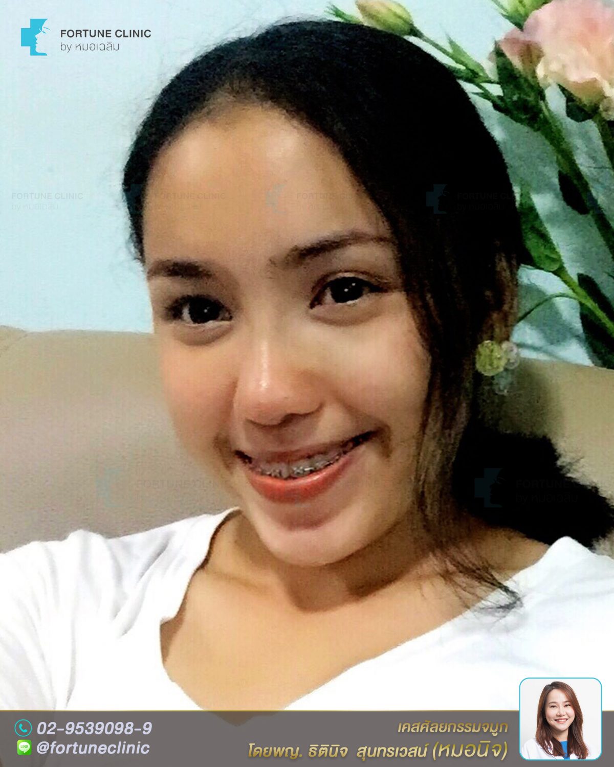 คุณหมูแดงเป็นเคสเนื้อน้อยมากกกค่ะ ผิวหนังบาง เนื้อจมูกไม่ค่อยยืด สันจมูกน้อยมาก และ จมูกเล็กมาก ปลายเชิดทำให้ดูจมูกสั้นค่า