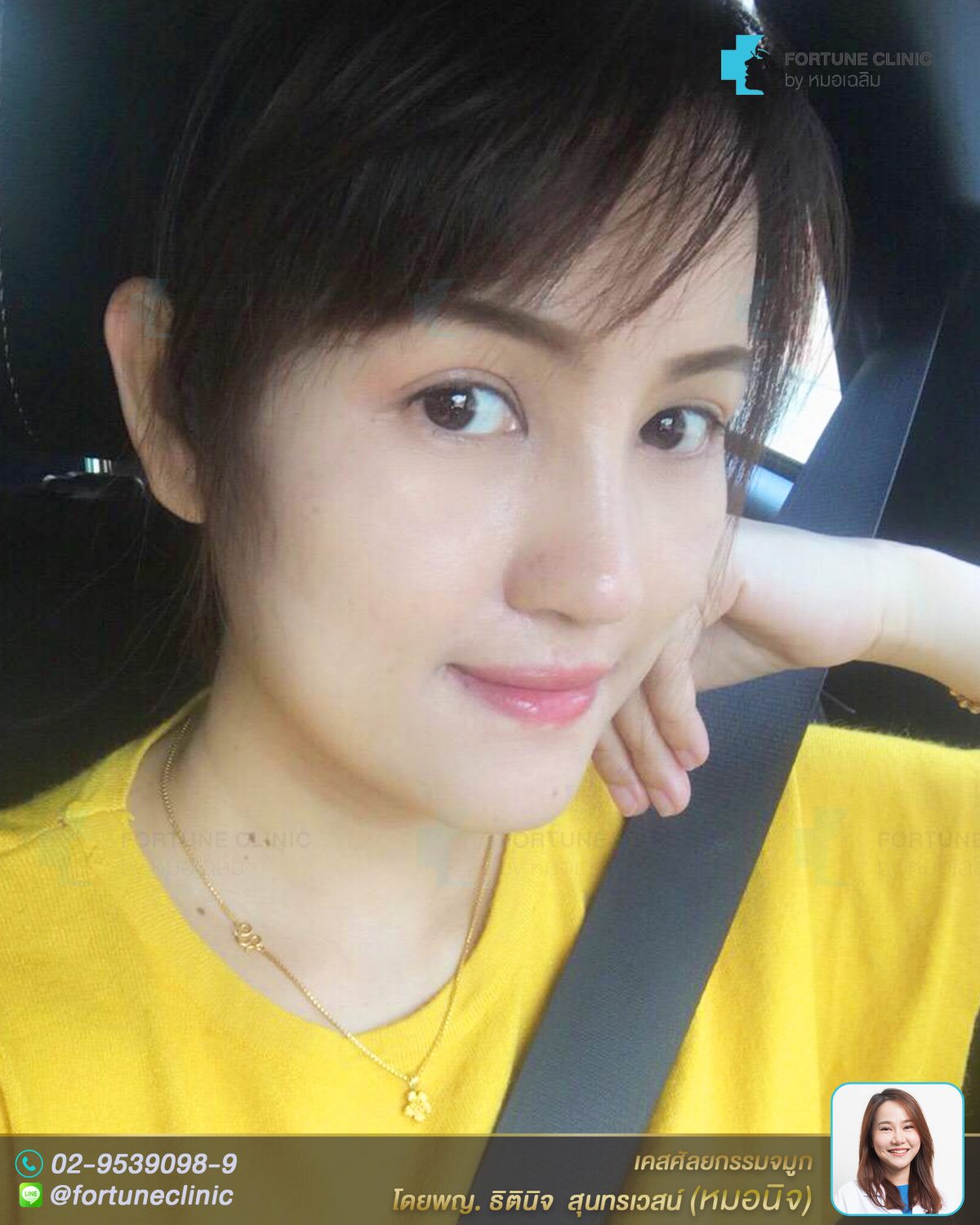 หลังเสริมคนไข้ดูสวยมีมิติขึ้นมาก สันจมูกโด่งสวย หัวตาเนียนมาก ปลายพุ่งเรียวเล็กลง ปีกหุบเข้าโดยไม่ต้องตัดปีก เนียนเป็นธรรมชาติ ไม่เห็นเป็นสันแท่งหลังทำ เพราะวางซิลิโคนในชั้นลึก ดูสวยหวาน สวยคม ทรงตาก็สวยขึ้นเป็นผลพลอยได้ไปด้วย สดใสขึ้นมากค่า