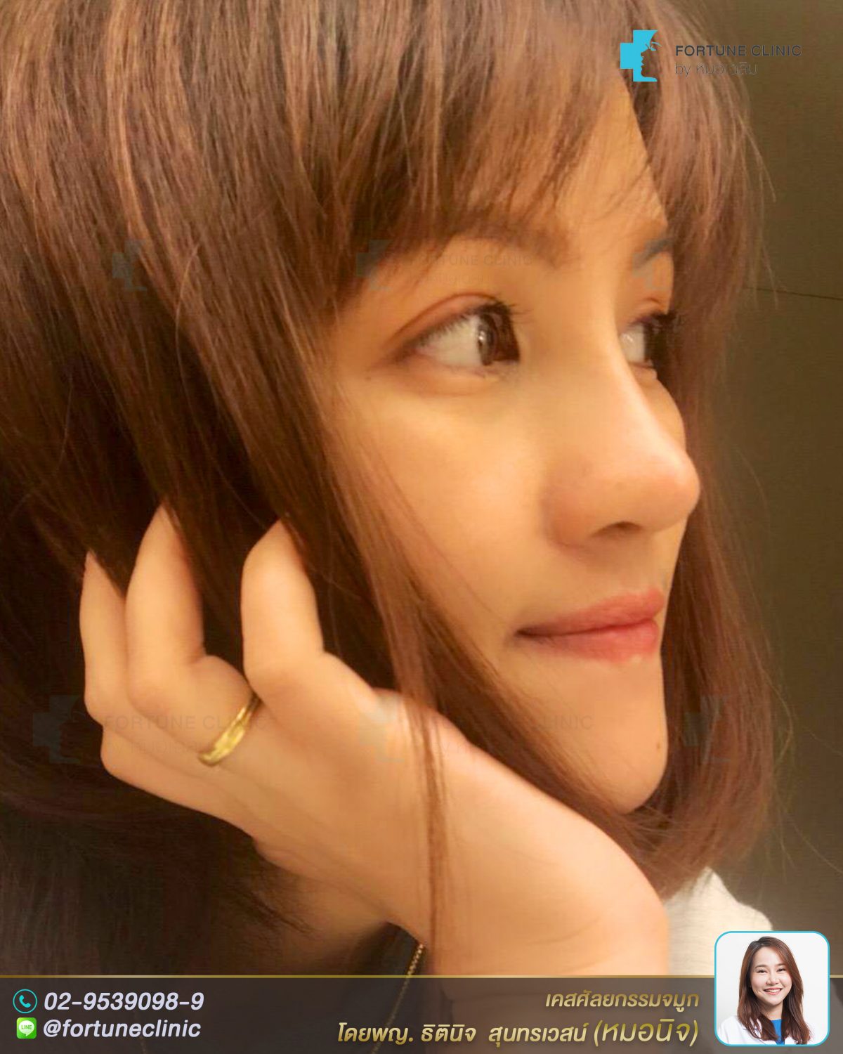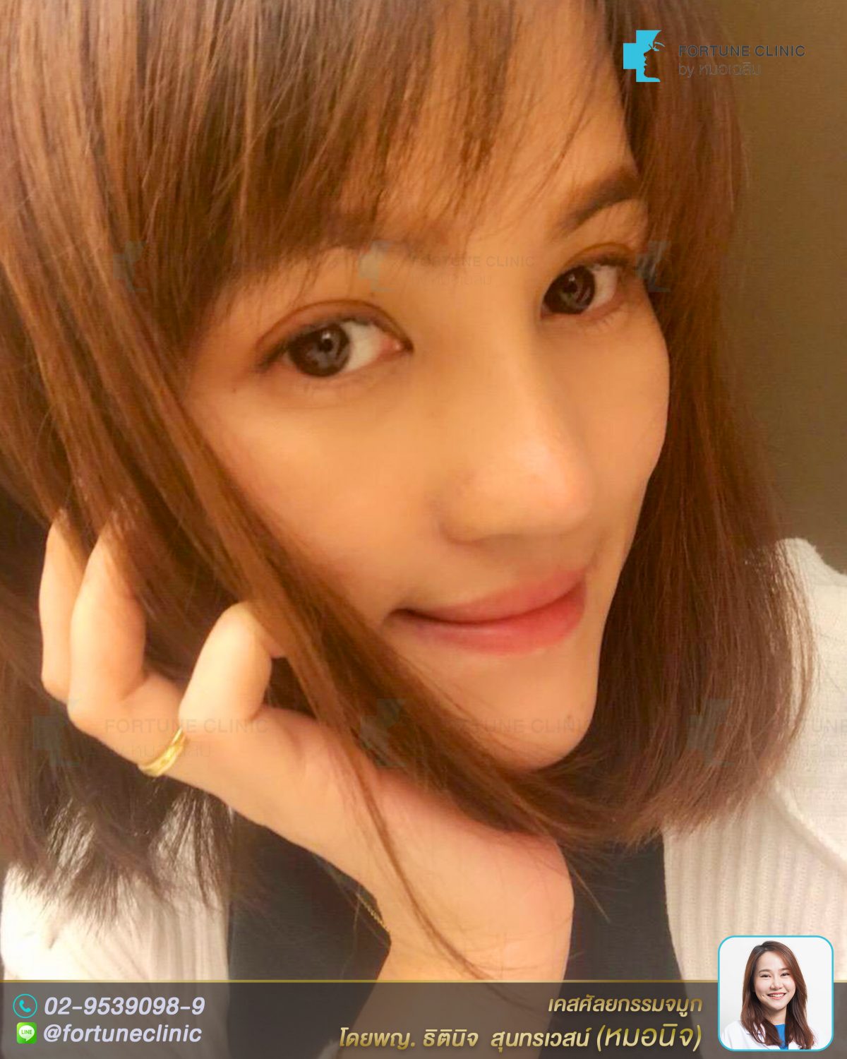 หมอนิจแนะนำเสริมด้วยซิลิโคนอย่างเดียวให้โด่งขึ้น เน้นช่วงหัวตาให้สูงขึ้น และ เนียนเป็นสโลปรับกับแนวหน้าผาก