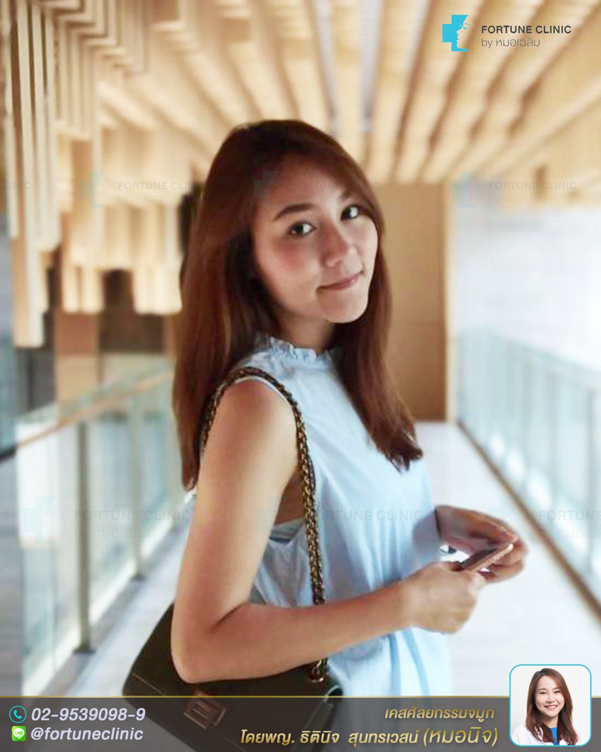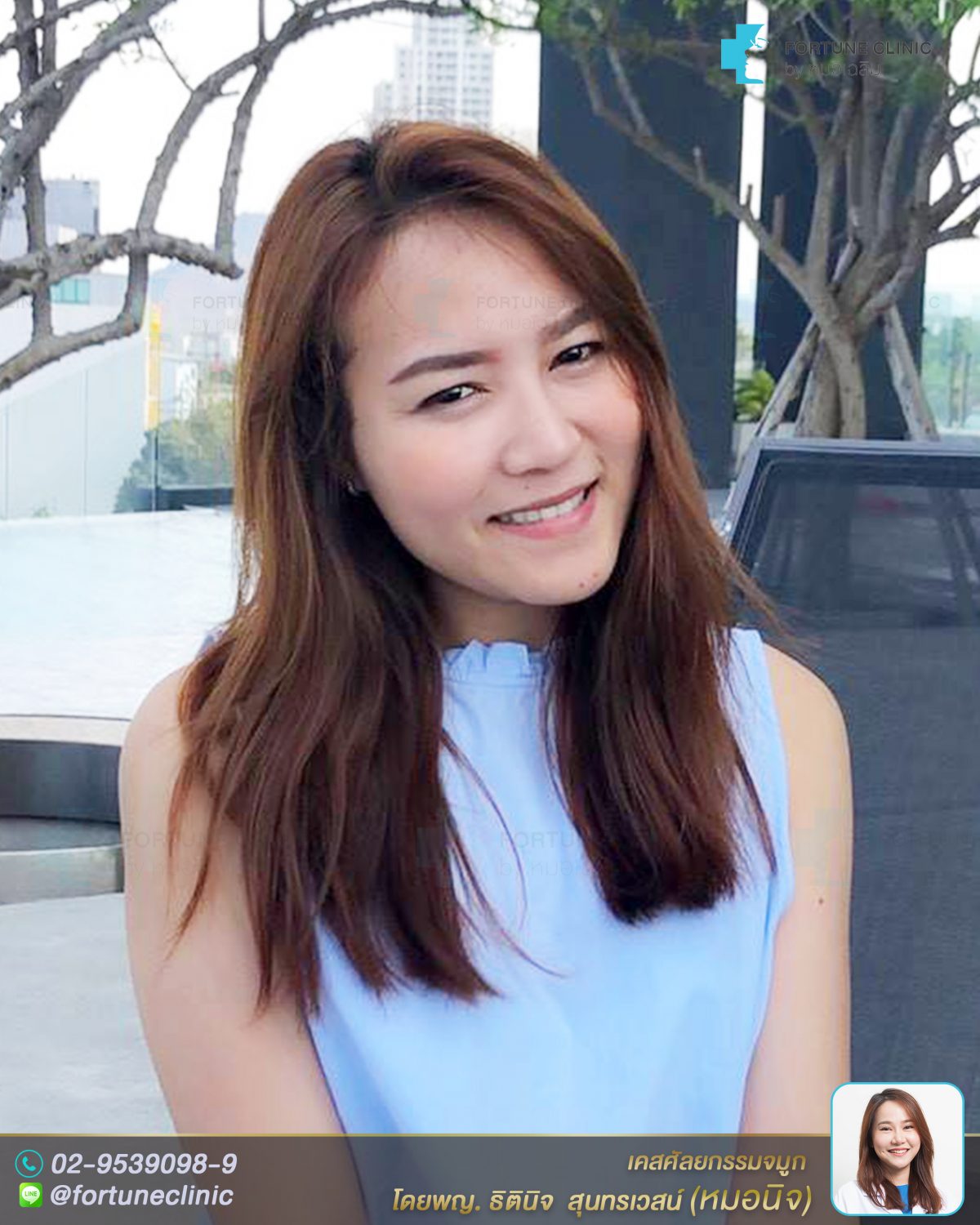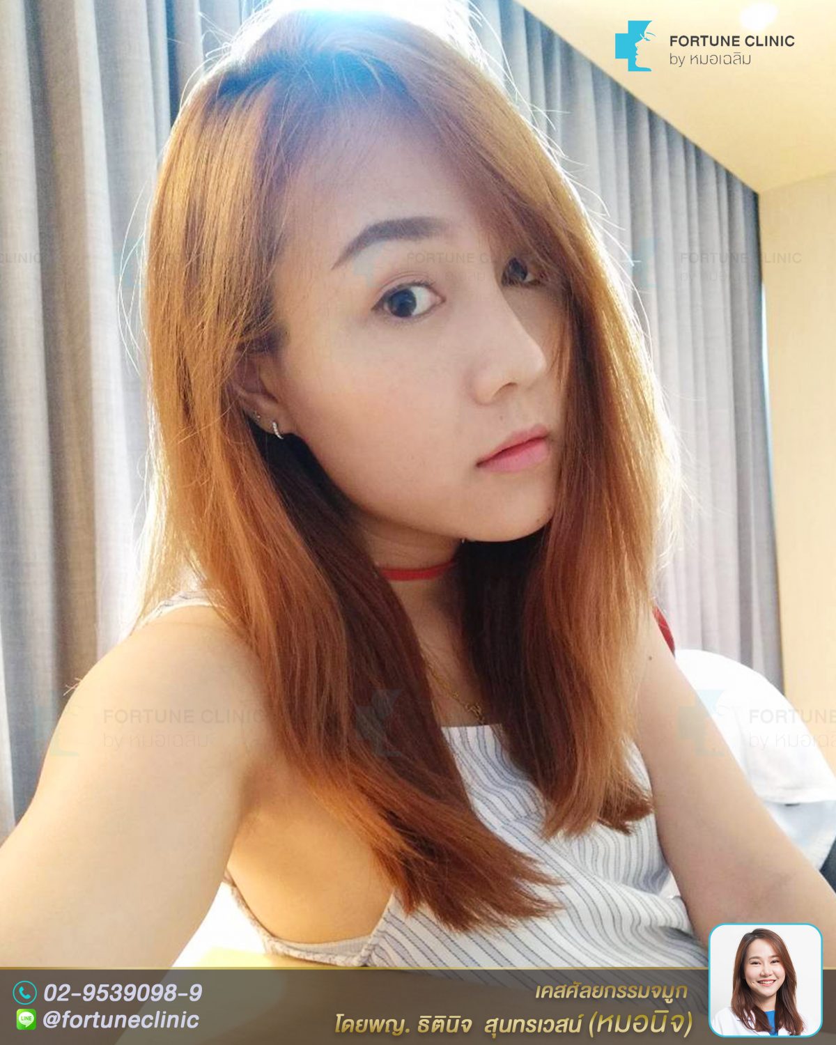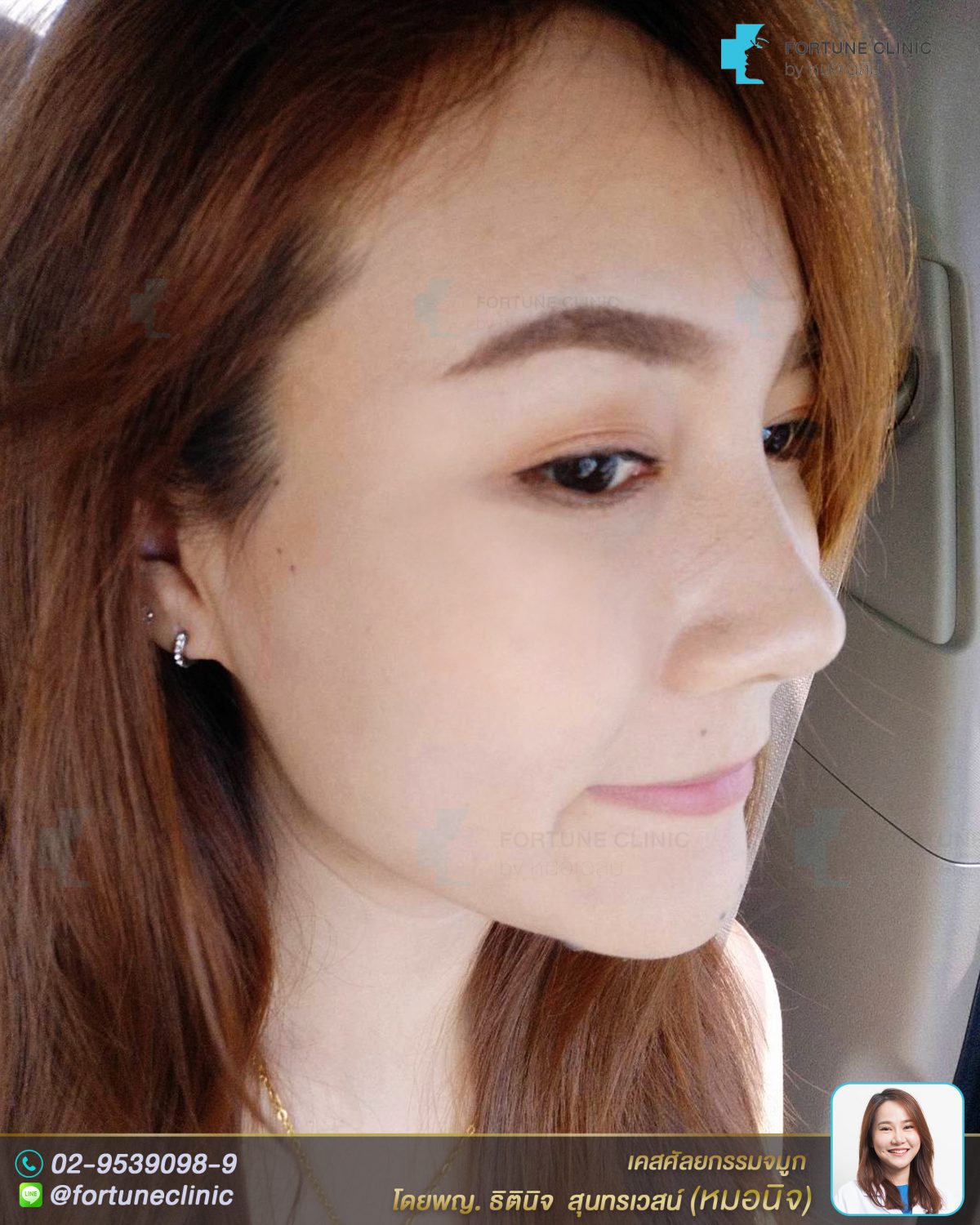 หลังเสริมคุณดรีมดูสวยหวาน สดใสขึ้น ดูเด็กลง ใบหน้าสวยเด่นขึ้นและมีมิติได้สมดุลมากขึ้น ปลายจมูกพุ่งเรียวสวย และดูเนียนเป็นธรรมชาติ ปีกดูแคบลง โดยไม่ต้องตัดปีกเลยค่า