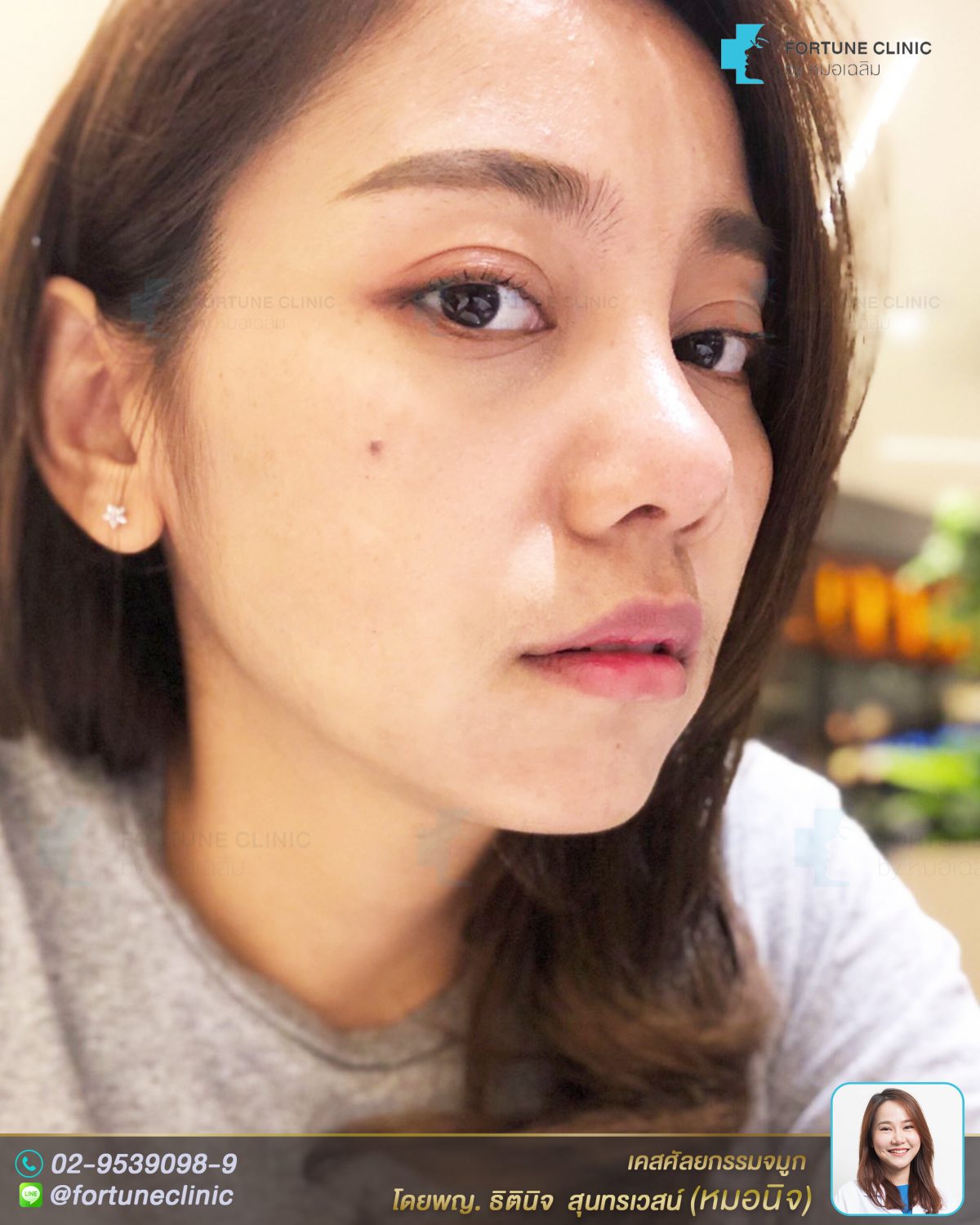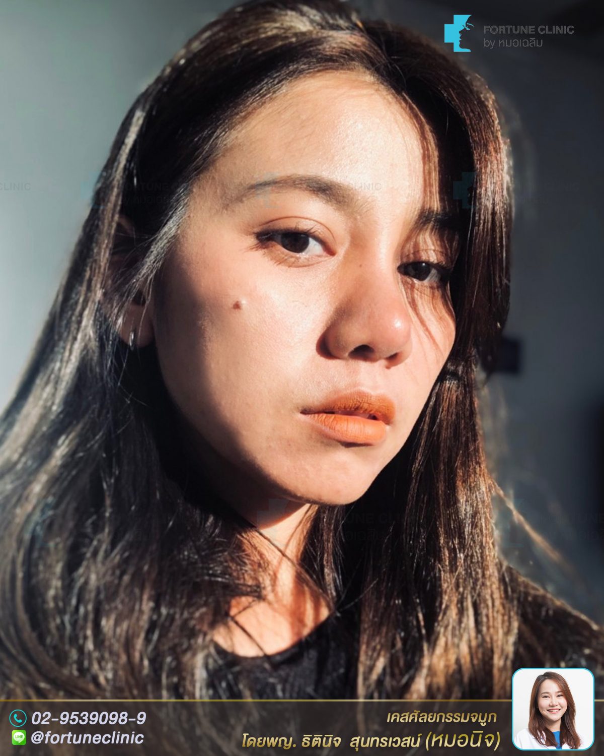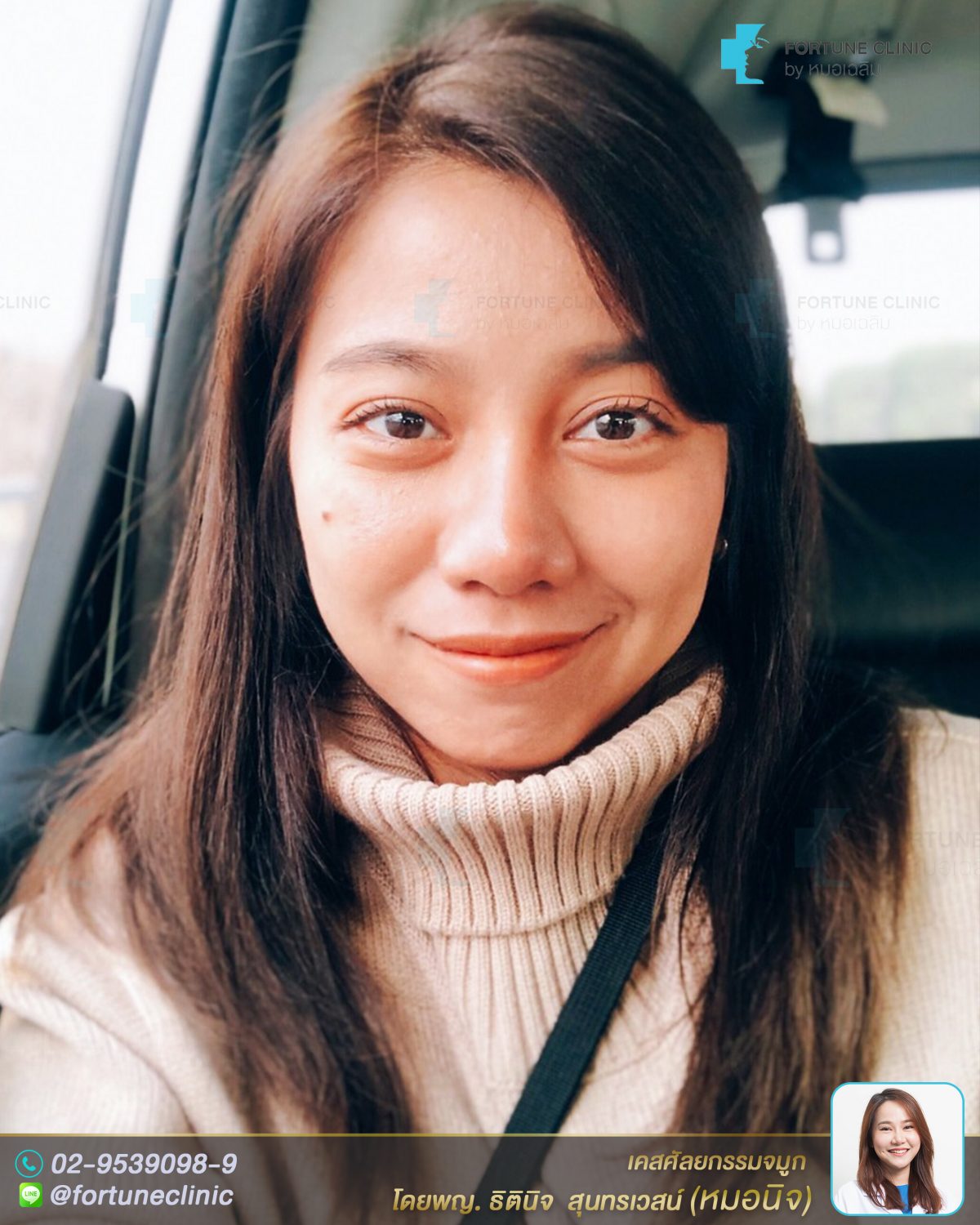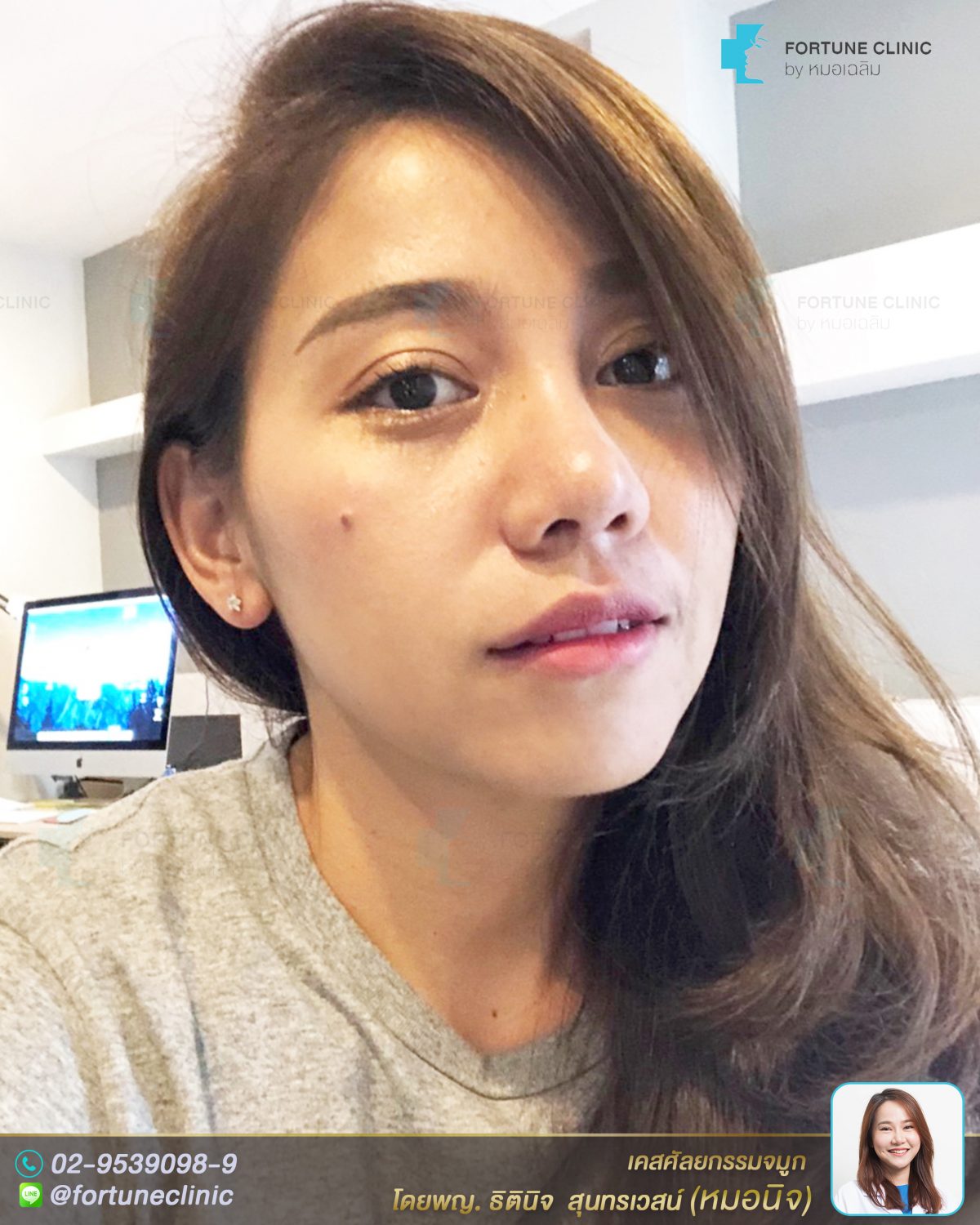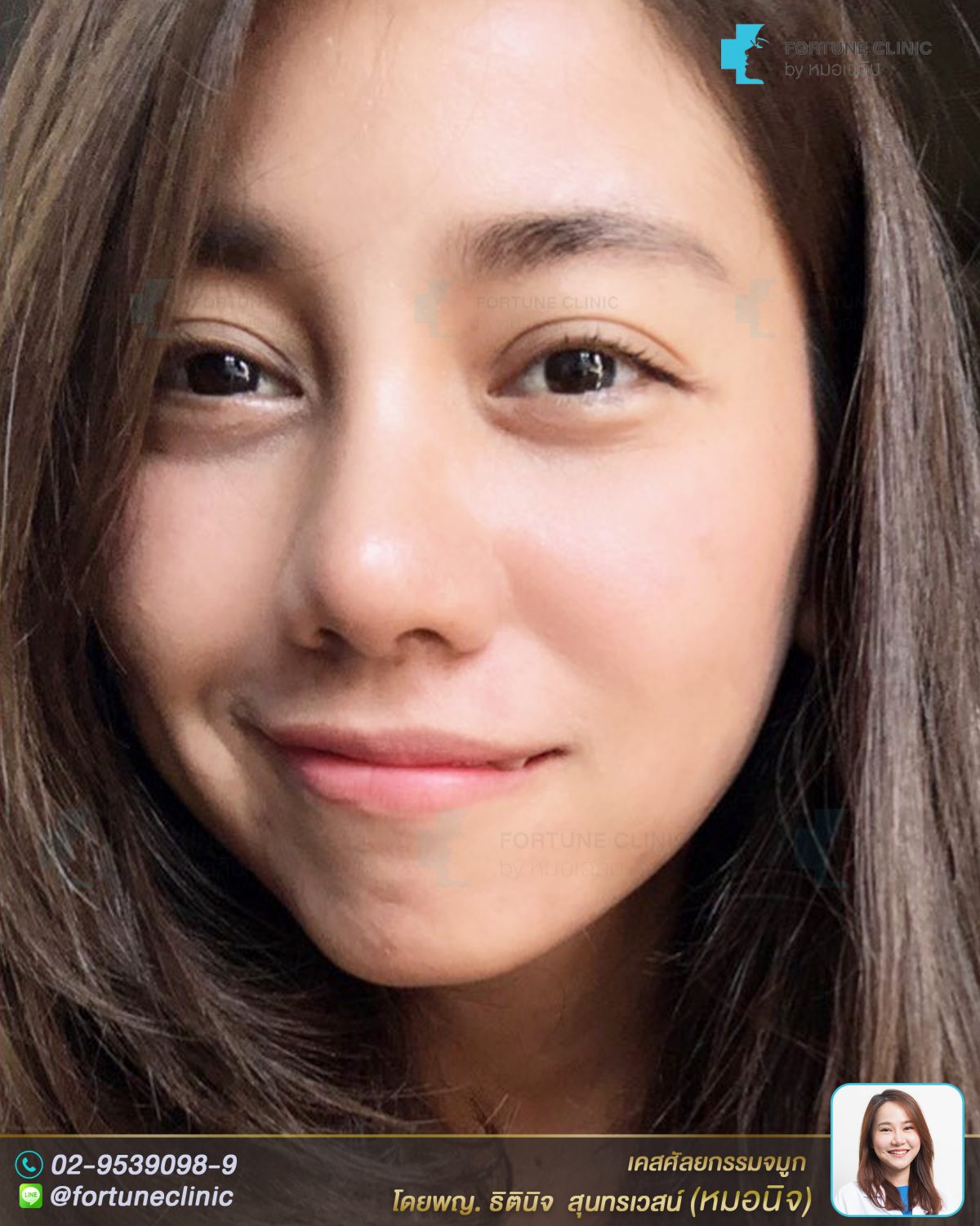 หลังเสริมคุณพิมดูสวยคมมีมิติมากขึ้น รูปหน้าดูเรียวเล็กลง ปลายจมูกและปีกเรียวเล็กลง ทรงตาสวยขึ้น หัวตาดูเรียวยาวขึ้น ทำให้ใบหน้าดูสวยสดใสขึ้น ดูเนียนเป็นธรรมชาติมากเลยค่า
