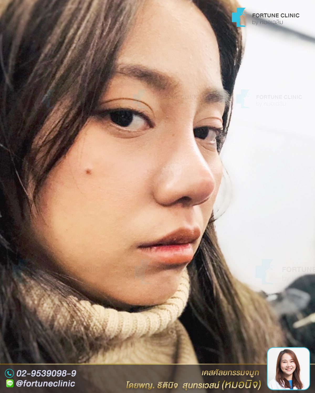 ทำแล้วสวยหวานไปเลยค่า เดิมคุณพิมสันจมูกน้อย ไม่โด่ง มีเนื้อจมูกหนา และ ปลายจมูกใหญ่ ปีกหนาและใหญ่