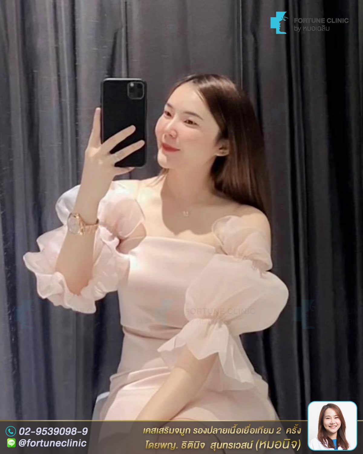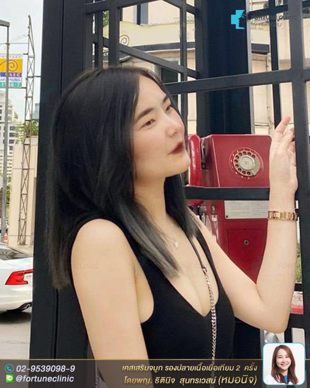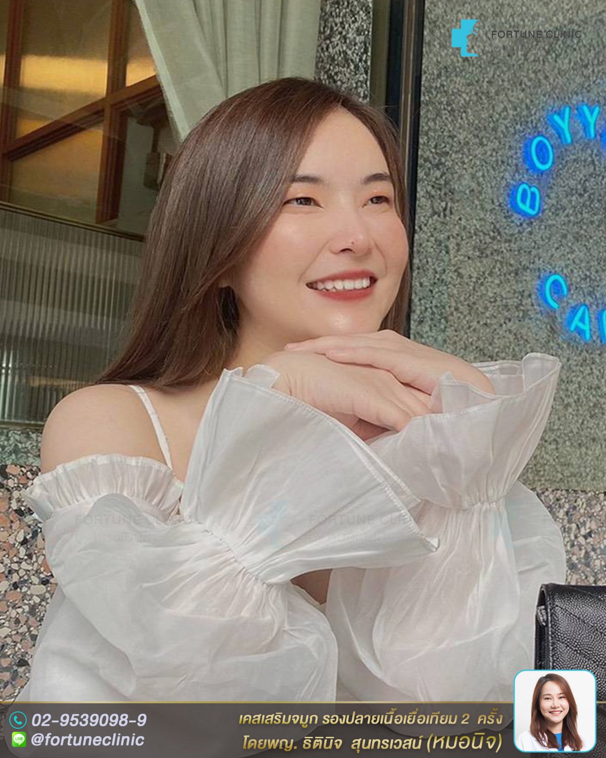 หลังเสริม คุณป๊อปได้มารองปลายจมูกด้วยเนื้อเยื่อเทียมเพิ่ม  2 ครั้ง เพื่อให้ได้ปลายสวยพุ่งขึ้นอย่างที่ต้องการ ปลอดภัยระยะยาว ไม่ต้องถอดแก้ซิลิโคน ตอนนี้เกือบ 2 ปีแล้วค่า คุณป๊อปดูสวยสดใส รูปหน้ามีมิติสวยขึ้น เป็นทรงสโลปปลายพุ่งสวย ปลายจมูก​เรียวเล็กลง​พุ่งสวย เสริมยกปลาย ทำให้ปีกจมูก​หุบสวยเรียวขึ้น สวยเนียนและยังดูเป็นธรรมชาติ ไม่หลอกตาด้วยค่า