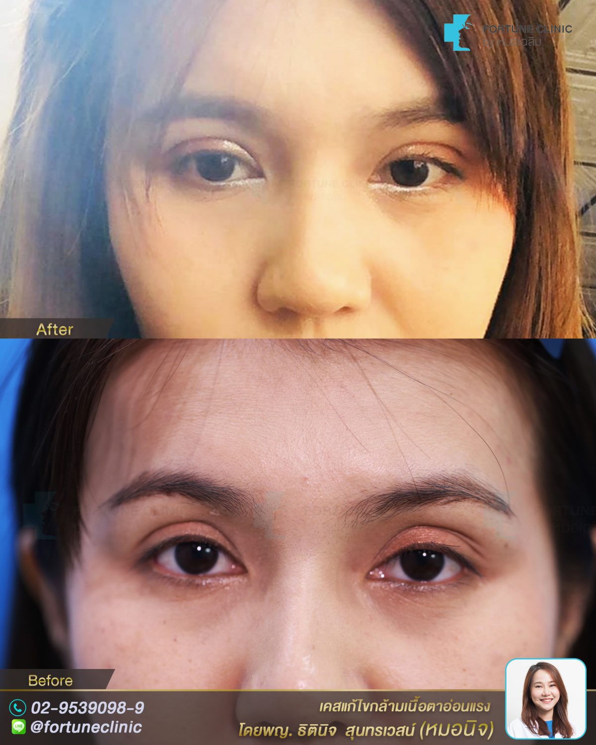 หลังแก้ไขกล้ามเนื้อตา คนไข้ดูตาหวานสวย สดใสขึ้นและ หน้าเด็กลงมากก แววตาดูมีชีวิตชีวา อ่อนหวานขึ้นมาก ทำให้ใบหน้าโดยรวมดูหวานขึ้น ดูตื่นขึ้นเยอะเลยค่า