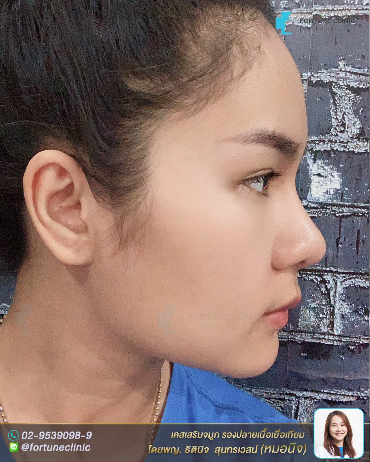 – รองปลายจมูกด้วยเนื้อเยื่อเทียม ADM เพื่อตกแต่งปลายให้ยาวพุ่งสวยขึ้น ปลอดภัยกว่าในระยะยาว ป้องกันปลายบางใสในอนาคต