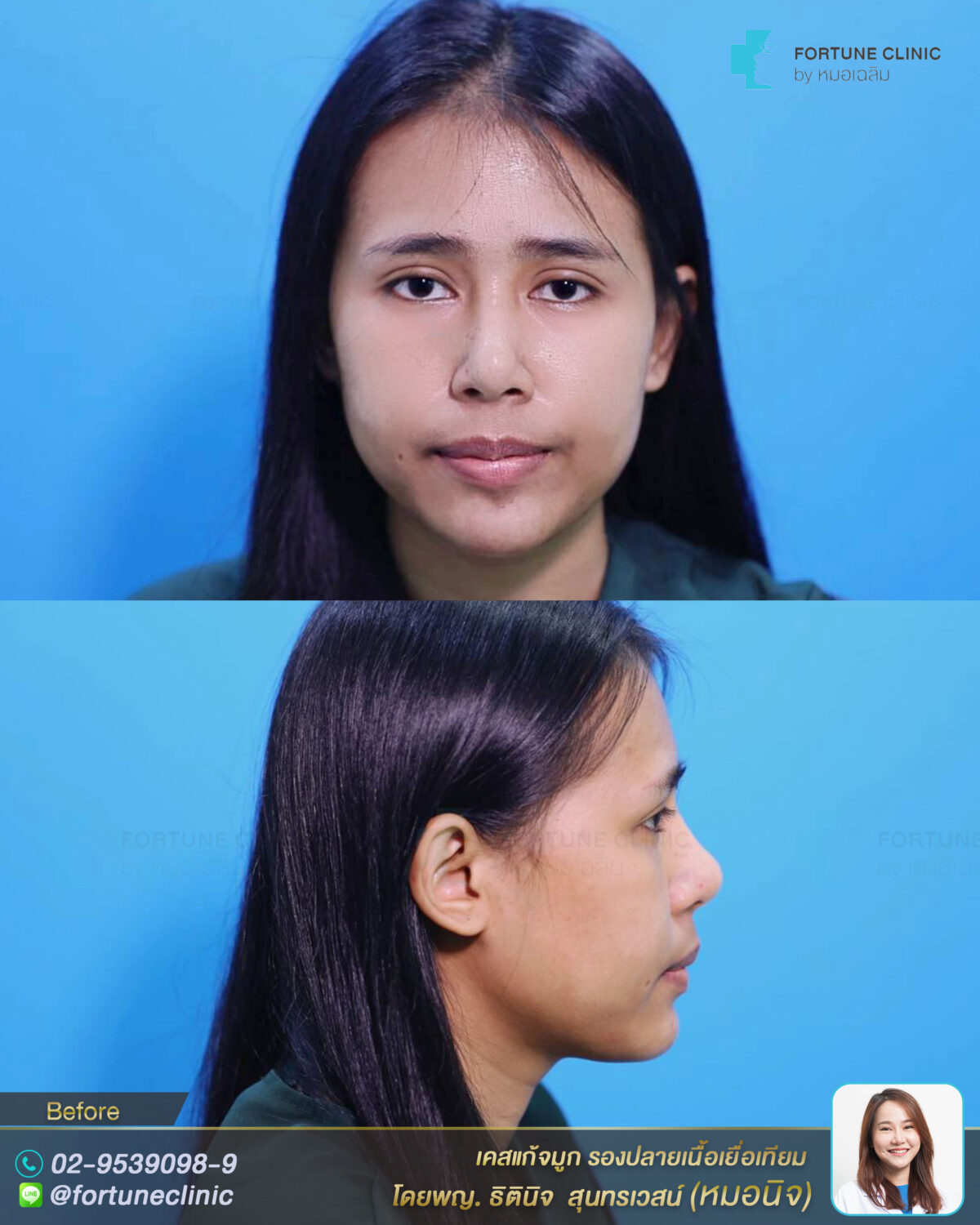 – เปลี่ยนซิลิโคน เหลาออกแบบใหม่เปลี่ยนให้ทรงจมูกดูเรียวยาวขึ้น ทรงหวานขึ้น ไล่สโลปจากหัวตา ยกปลายพุ่ง และดันปลายให้เรียวยาวสวยขึ้น โดยไม่ฝืนเนื้อจมูกมากเกินไป และวางซิลิโคนชั้นใต้เยื่อหุ้มกระดูก เพื่อซิลิโคนล็อคแน่น เนียนสวยไม่โยกเอียง