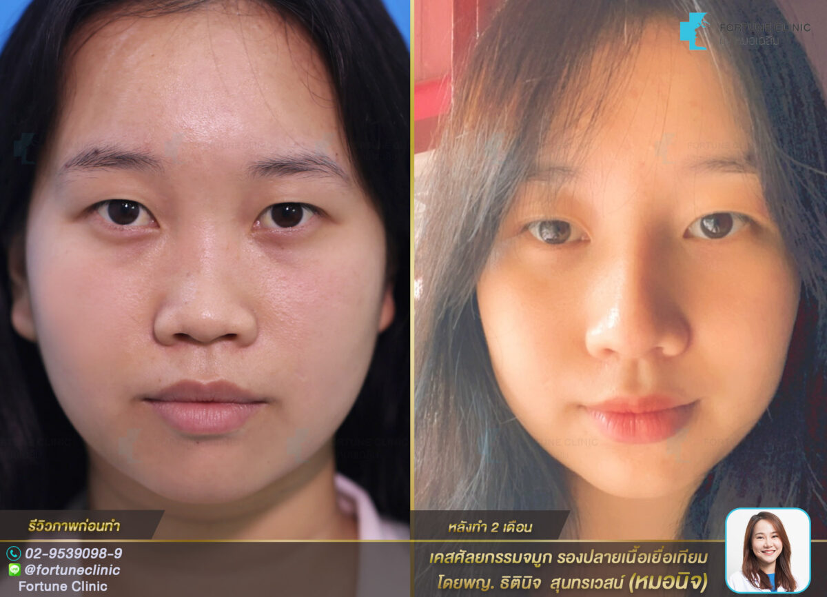 เดิมเป็นเคสเนื้อจมูกน้อย ผิวบาง เดิมสันจมูกน้อยมาก สันช่วงหว่างตาเว้าลึกไม่รับกับหน้าผาก ทำให้ใบหน้าดูแบนไม่มีมิติ ปลายจมูกสั้นใหญ่ ขาดหยดน้ำ และปลายไม่พุ่ง ปีกกว้าง