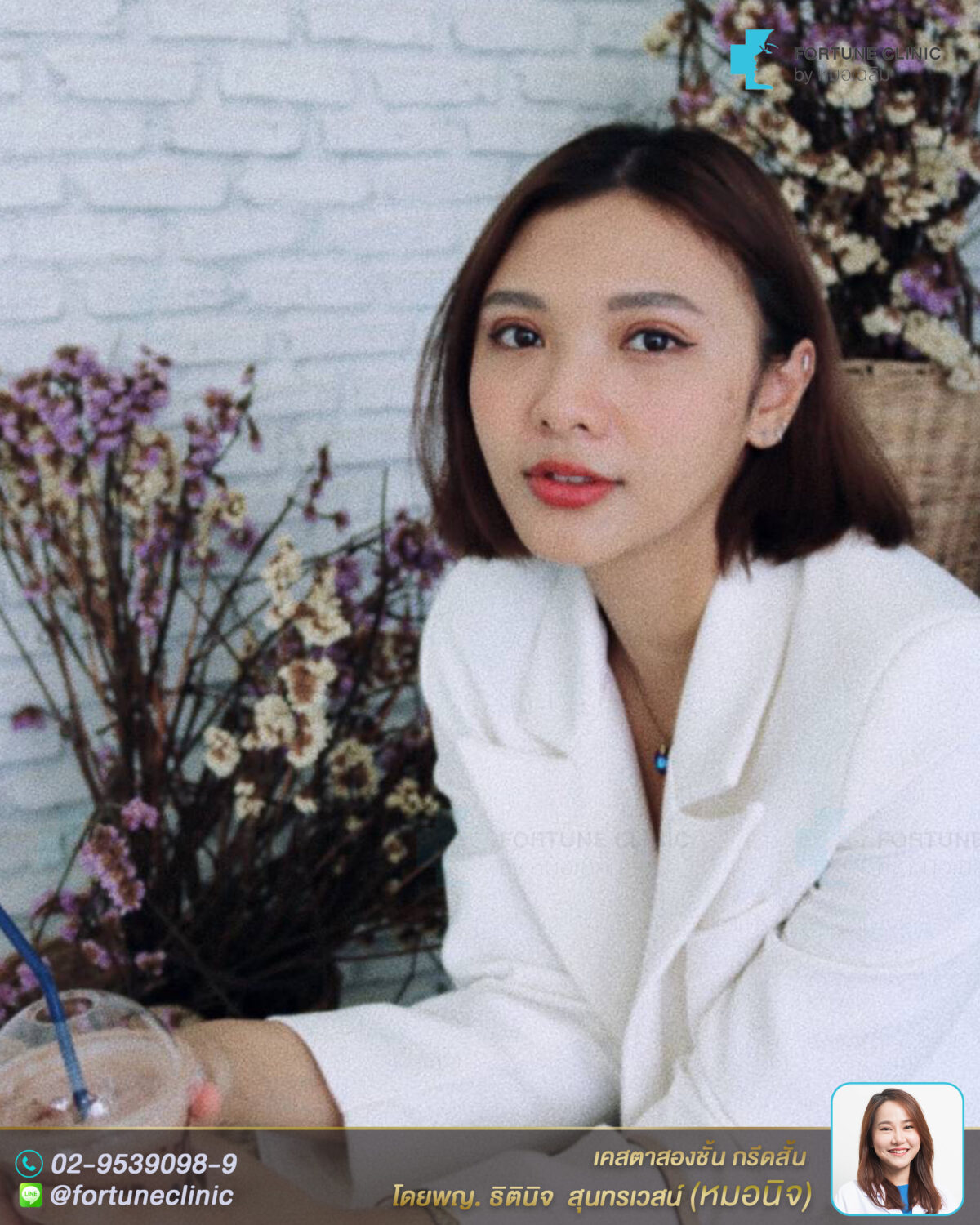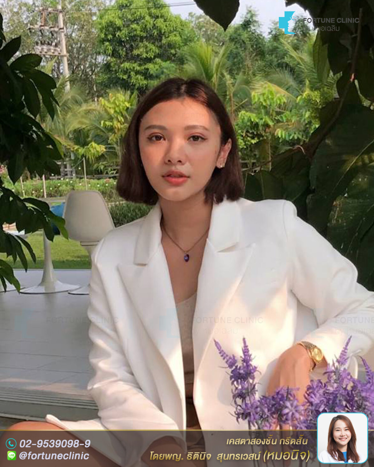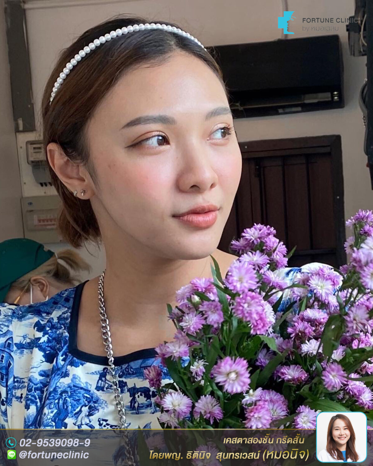หมอนิจทำตาสองชั้นแบบกรีดสั้น ออกแบบให้ชั้นตาสูงขึ้นเล็กน้อย เป็นทรงหวานๆรับรูปทรงตา ร่วมกับเอาไขมันชั้นตาออกบางส่วน เย็บชั้นตาใหม่ให้สูงขึ้นและเท่ากันทั้งสองข้าง เพื่อชั้นตาหวานสวย ไร้รอยแผล