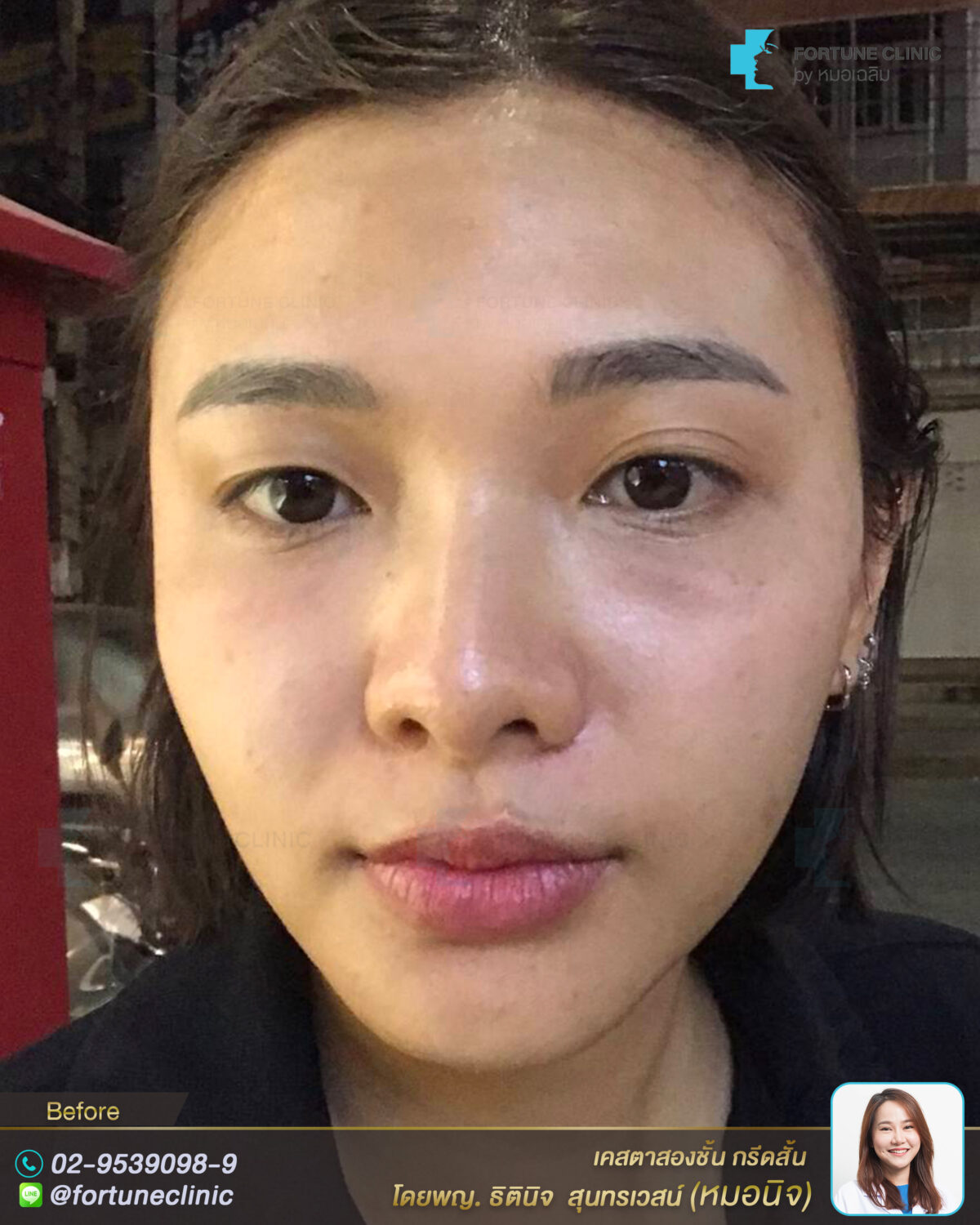 เดิมชั้นตา2ข้างไม่เท่ากัน เป็นชั้นตาหลบในข้างหนึ่ง ทำให้ตาดูไม่สดใส แต่งหน้ายาก คนไข้ต้องการชั้นตาแบบธรรมชาติ ให้เท่ากันทั้งสองข้าง และให้ดูหน้าหวานขึ้น
