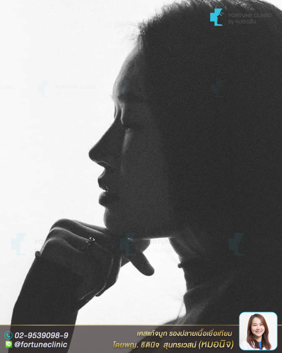 – รองปลายจมูกด้วยเนื้อเยื่อเทียม ADM ตกแต่งปลายจมูกให้เรียวยาวพุ่งสวยขึ้น ป้องกันปลายบางใสในระยะยาว