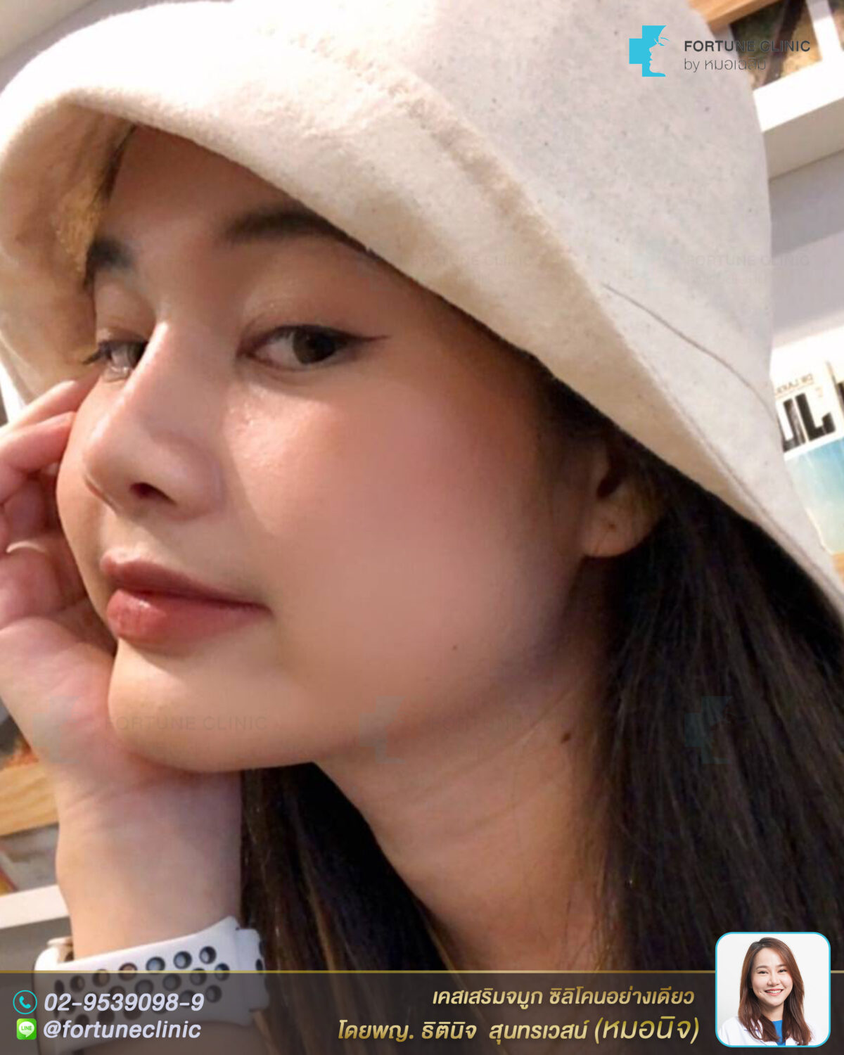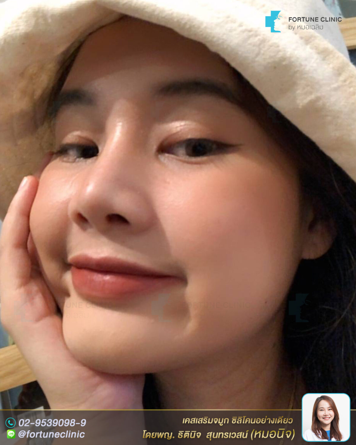 หลังเสริมหน้าหวานสวยเนียนเป็นธรรมชาติ จมูกทรงสวยเป็นสโลปหวานเนียน หัวตาโด่งคมรับหน้าผาก ปลายจมูกเรียวยาวขึ้นและเรียวเล็กลง มิติพุ่งสวยอย่างเป็นธรรมชาติ ดูอ่อนเยาว์ลง ใบหน้ามีสัดส่วนสวยขึ้นค่า