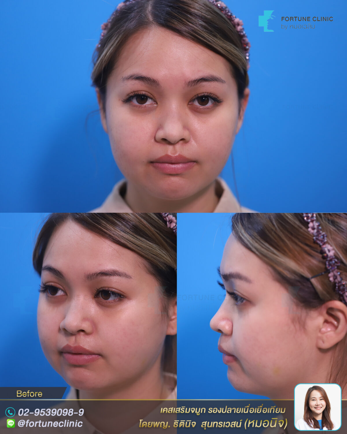 เดิมเนื้อจมูกน้อย ผิวหนังบาง สันจมูกหัวตาหักเว้าไม่รับกับหน้าผาก ทำให้หน้าตรงไม่มีมิติ และช่วงจมูกสั้น