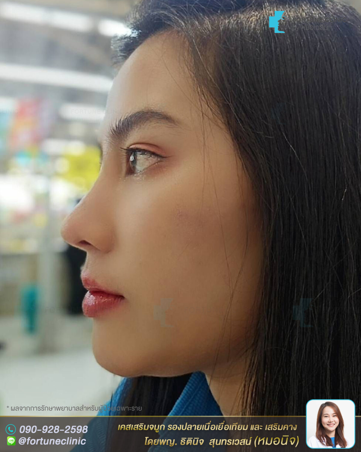 – หมอนิจเสริมด้วยซิลิโคนเหลาออกแบบเคสต่อเคส เสริมเป็นทรงสโลปหวานๆ เน้นยกหัวตาให้โด่งขึ้นเรียวเนียนจากหน้าผาก ไล่สโลปเรียวๆและยกปลายให้เรียวยาวพุ่งขึ้น มิติรับปลายคาง แล้ววางซิลิโคนชั้นใต้เยื่อหุ้มกระดูกเพื่อความสวยเนียนหลังเสริม