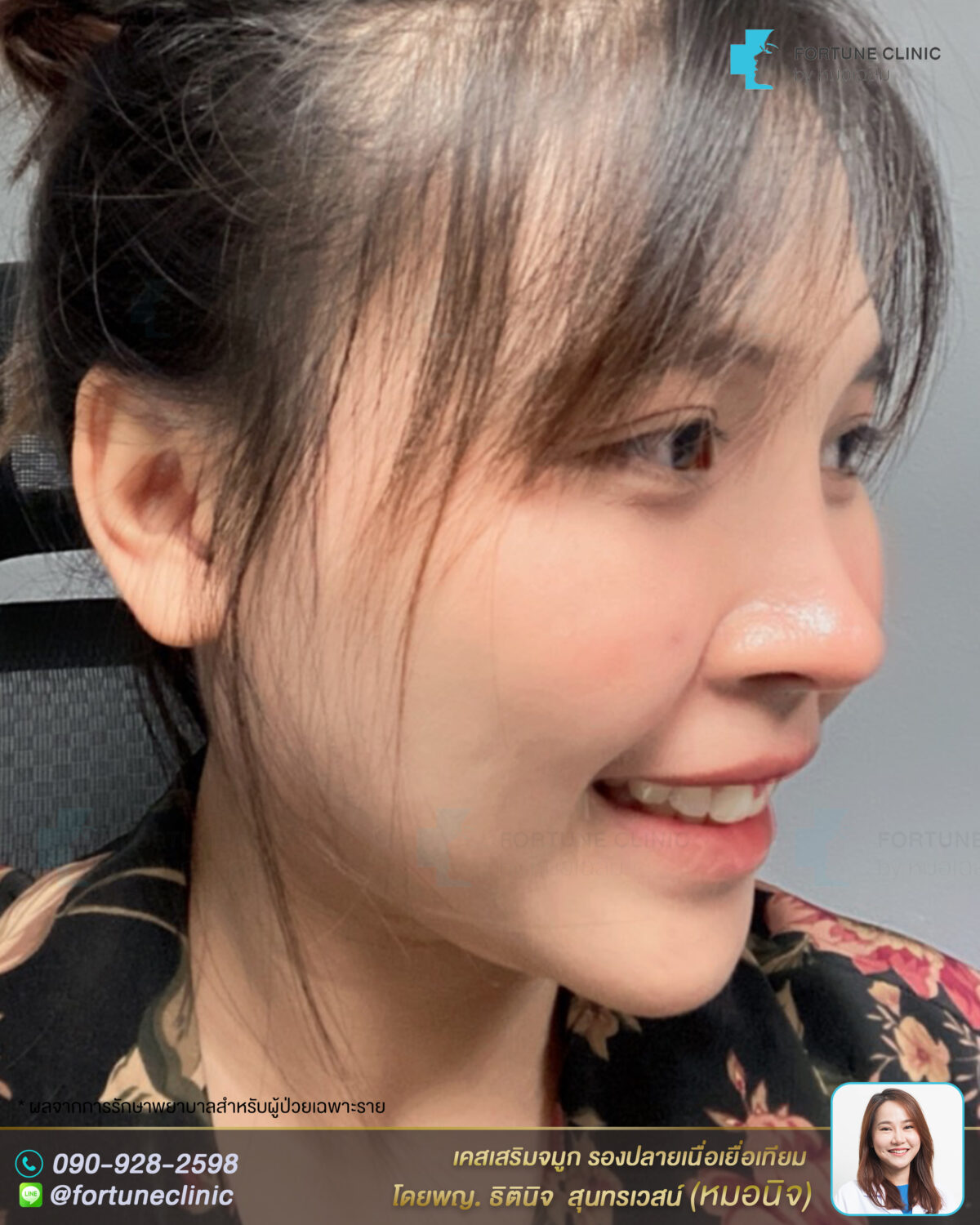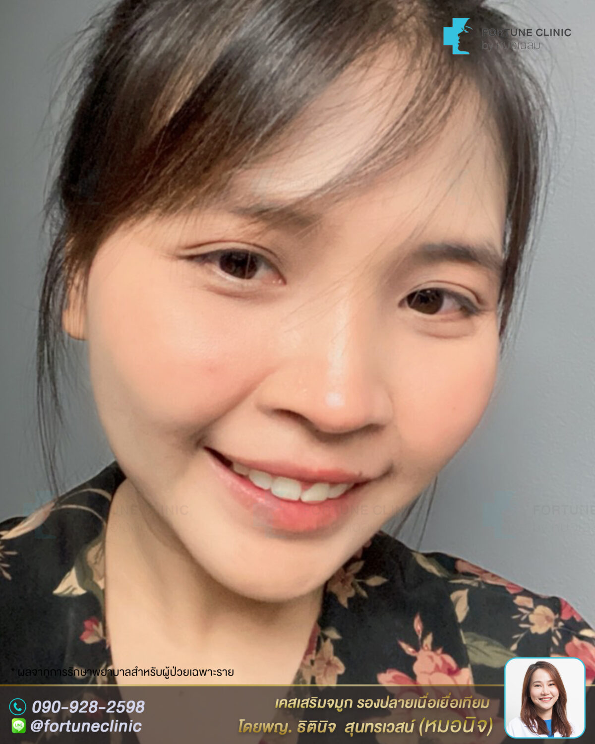 หมอนิจแนะนำเสริมด้วยซิลิโคนและรองปลายจมูกด้วยเนื้อเยื่อเทียม