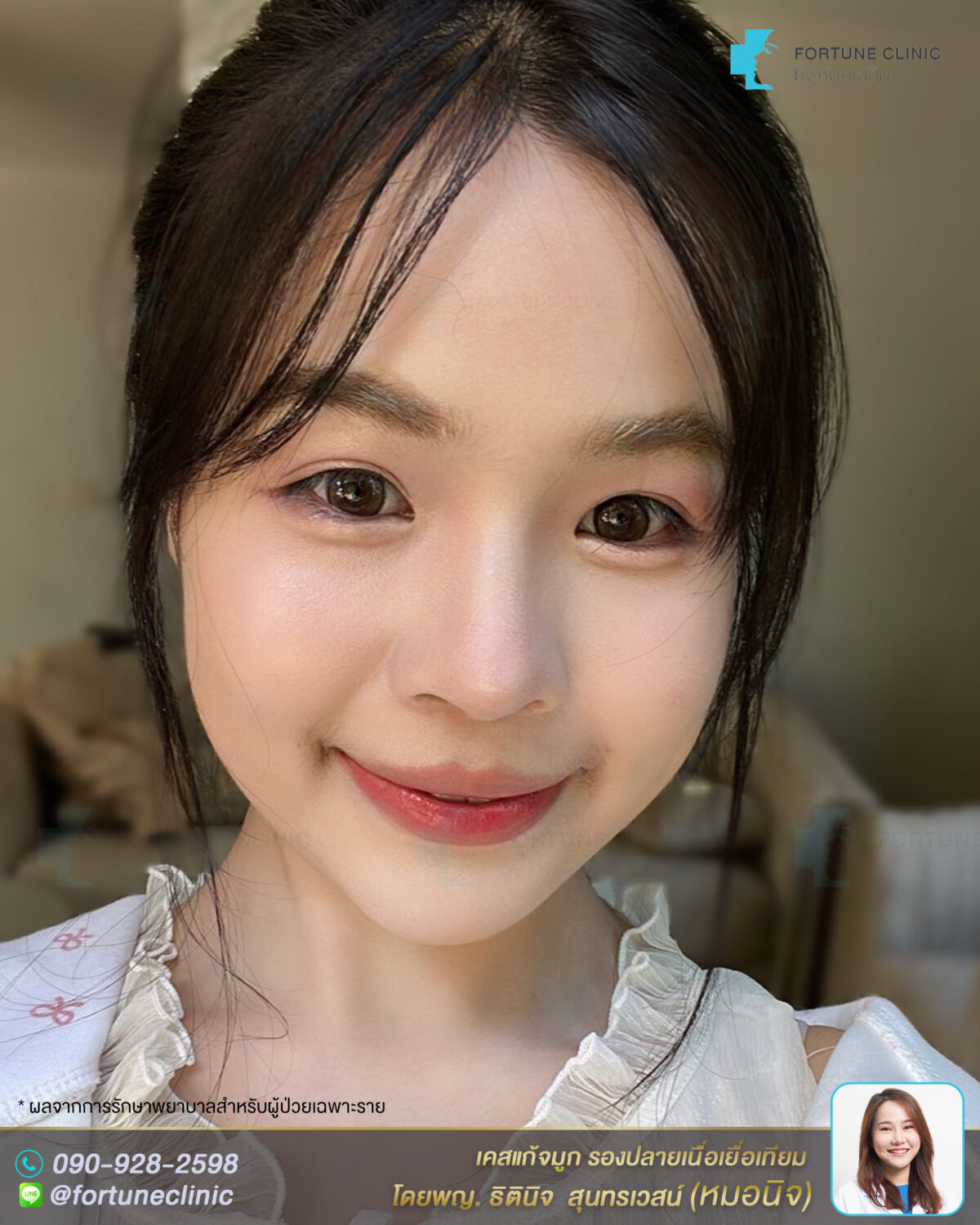 – แก้เปลี่ยนซิลิโคน ออกแบบเป็นทรงสโลปธรรมชาติ ไล่ทรงเรียวสวย และยกปลายพุ่งขึ้น แล้ววางซิลิโคนชั้นใต้เยื่อหุ้มกระดูกเพื่อความสวยเนียน ซิลิโคนอยู่แน่นไม่โยกเอียง