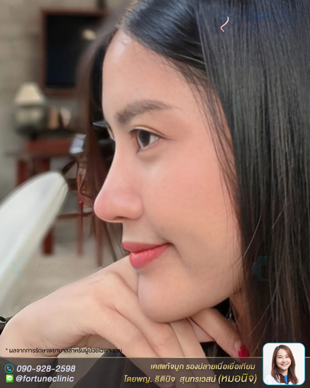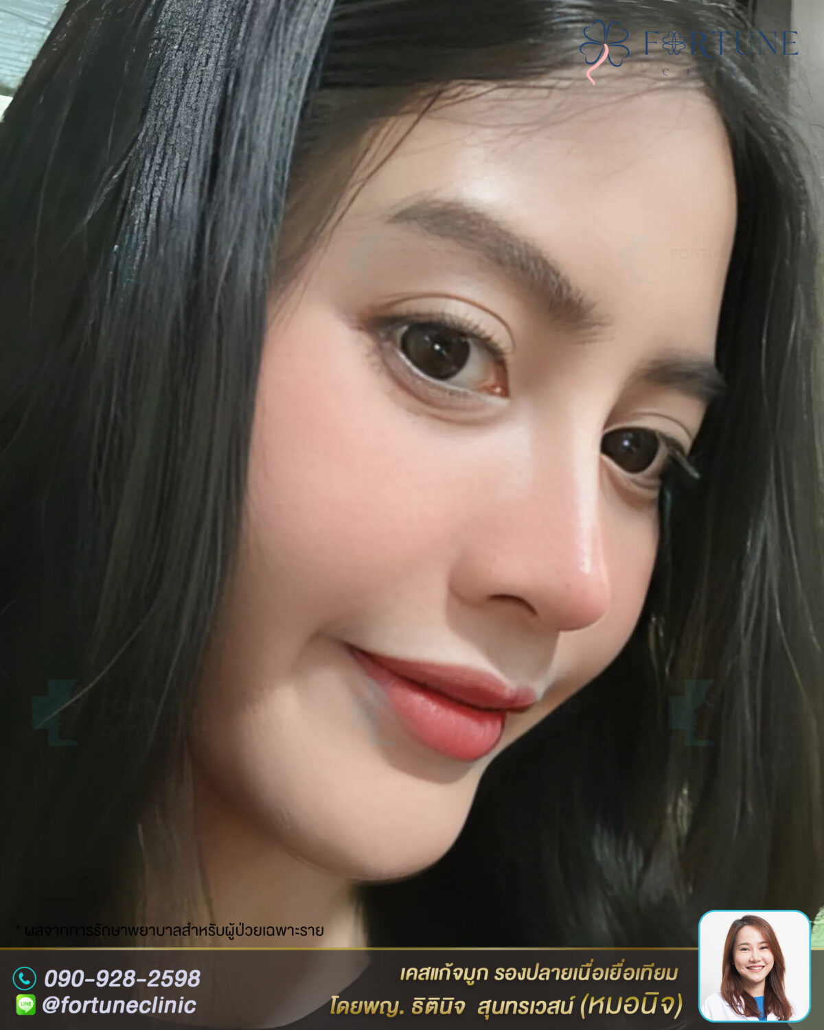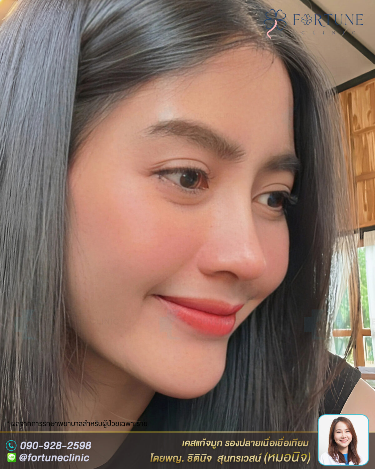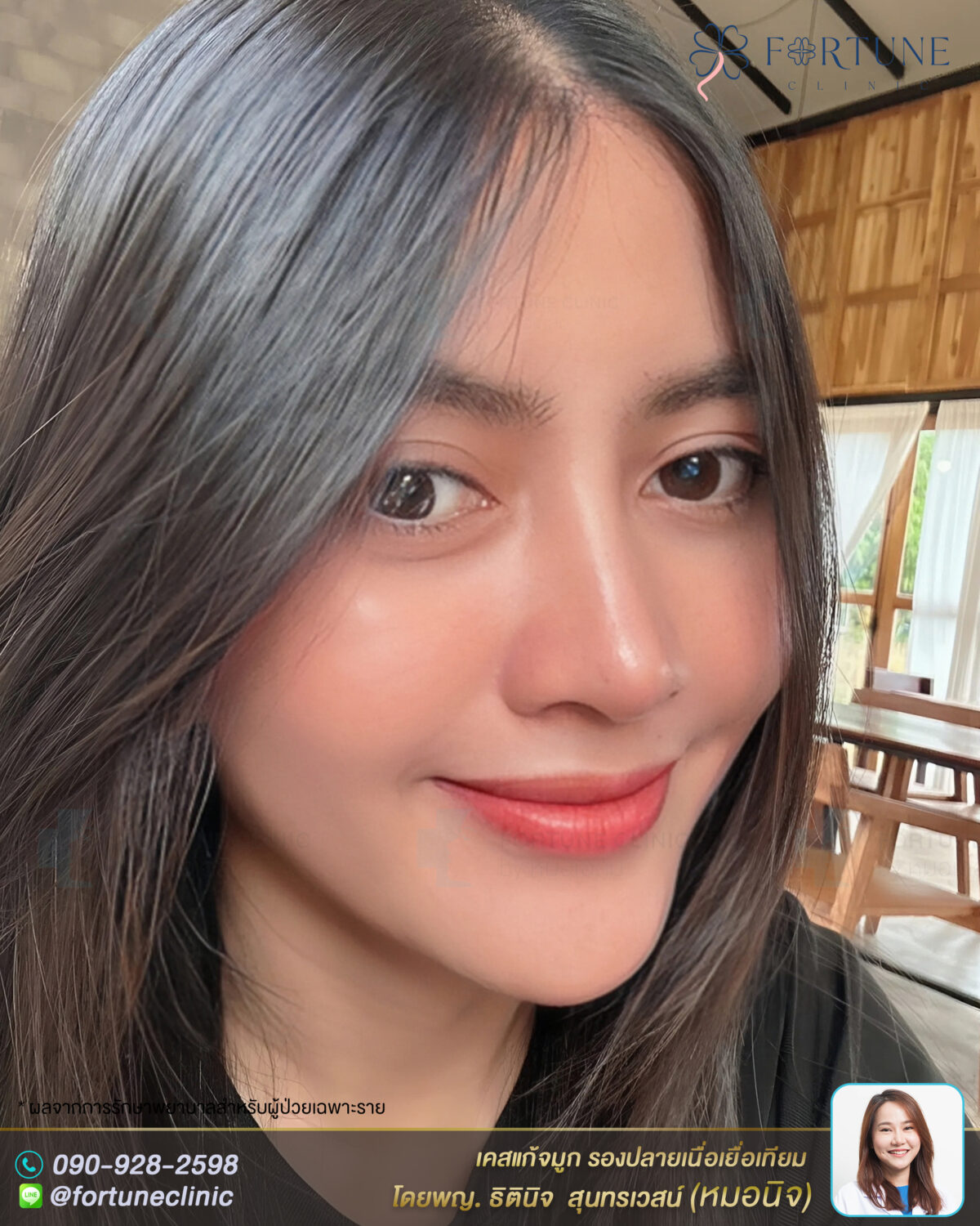 หลังแก้จมูกกับหมอนิจ หน้าหวานละมุนสวยขึ้นมากค่า สันจมูกเรียวสวย หัวตาเป็นสโลปหวาน สันตรง ปลายพุ่งเรียวสวย ปีกจมูกเรียวกระชับสวยขึ้น เรียวเล็กลงอย่างเป็นธรรมชาติ จมูกดูเรียวเล็กลง หน้าหวานขึ้นมาก ดูอ่อนเยาว์ลงมากค่า