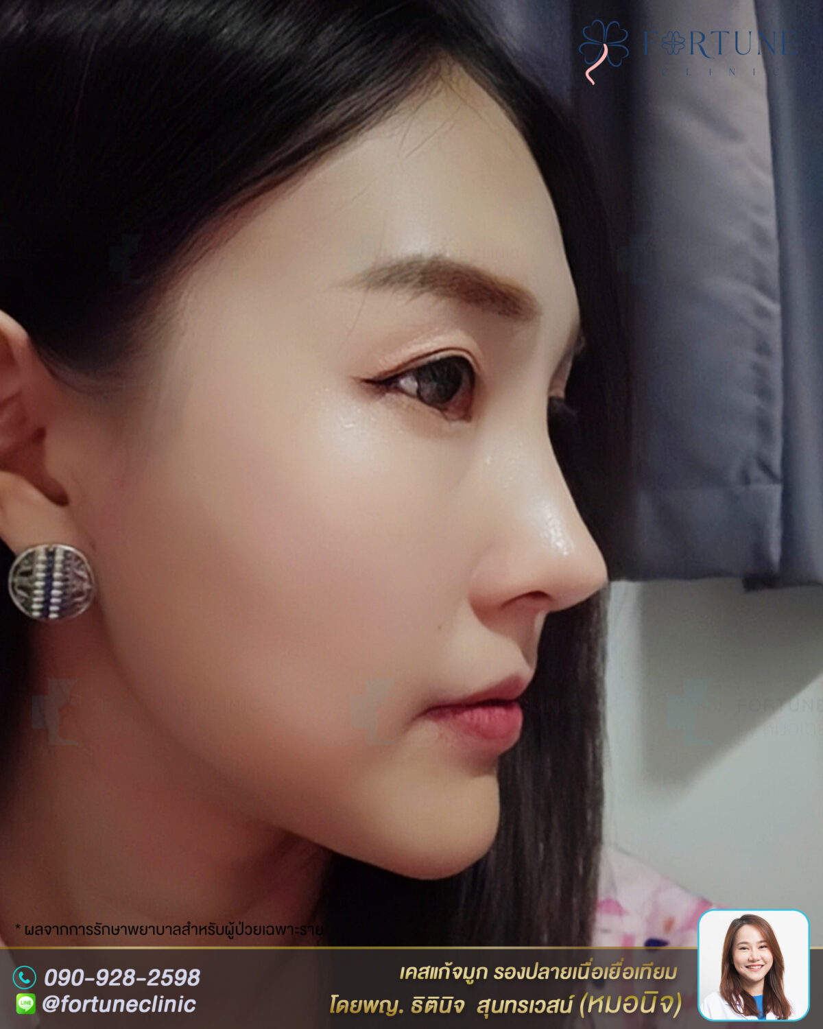 หลังแก้จมูกกับหมอนิจ หน้าหวานสวย มีมิติขึ้นมากค่า สันจมูกเรียวสวย หัวตาเป็นสโลปหวาน สันตรง แกนซิลิโคนอยู่แน่น ปลายพุ่งเรียวสวย ปีกจมูกเรียวกระชับสวยขึ้น เรียวเล็กลงอย่างเป็นธรรมชาติ สวยพุ่งรับกับใบหน้ามากขึ้น จมูกดูเรียวเล็กลง หน้าหวานขึ้น และ ดูอ่อนเยาว์ลงมากค่า