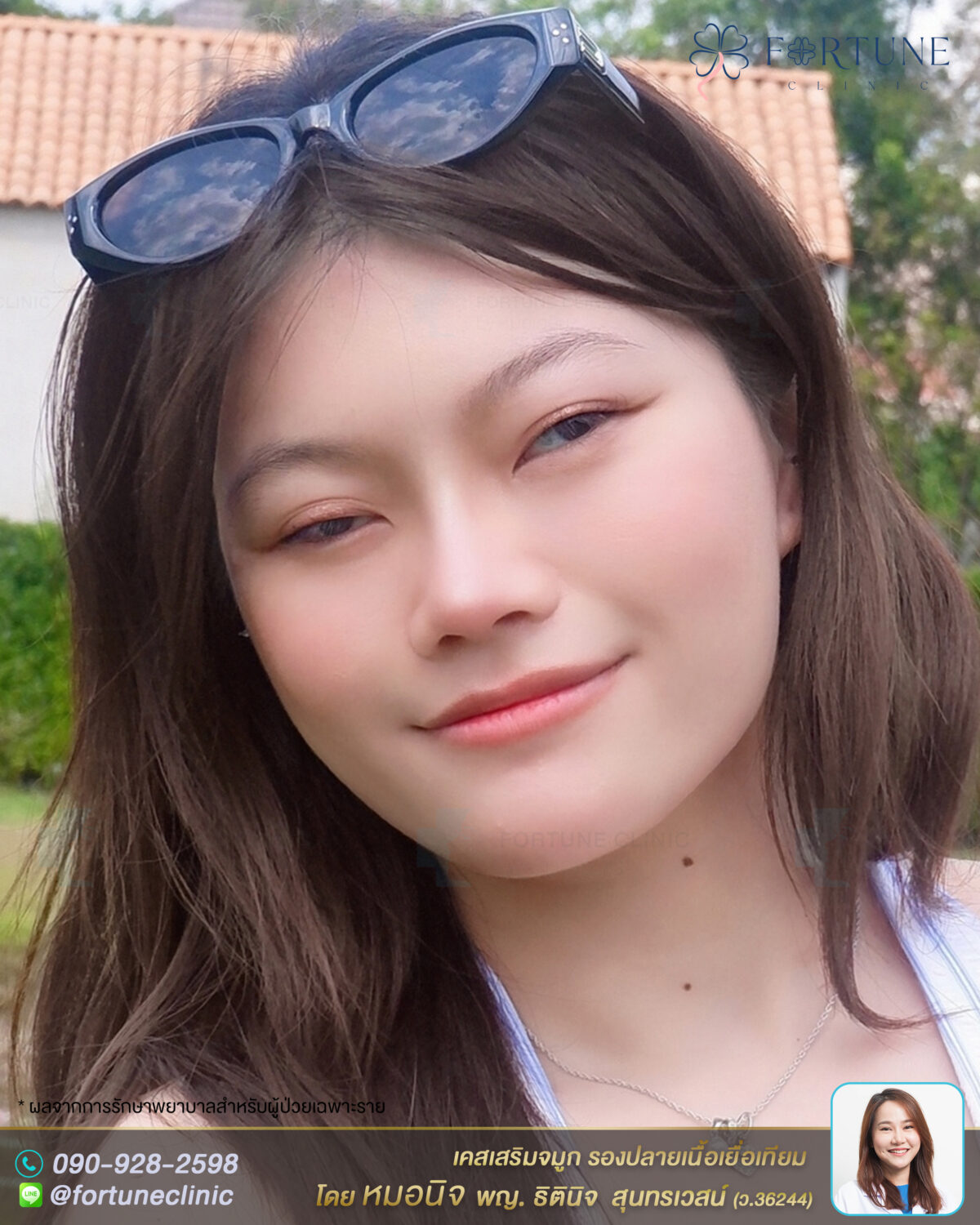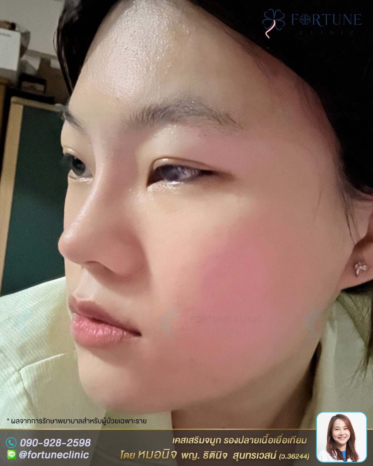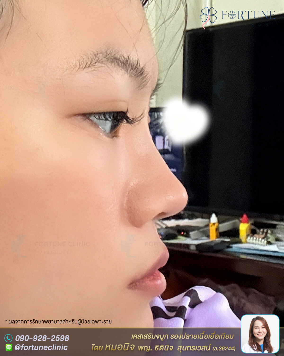 หลังเสริม รูปหน้าดูคมสวยมีมิติ จมูกดูเรียวยาวสวยขึ้น หัวตาเป็นสโลปหวานโด่งและเป็นธรรมชาติมาก สันจมูกโด่งคมรับหน้า เรียวมีมิติ ปลายจมูกเรียวเล็กลง พุ่งสวย ปีกจมูกเรียวสวยโดยไม่ต้องตัดปีก ดูหวานขึ้น ดูธรรมชาติมากๆค่า