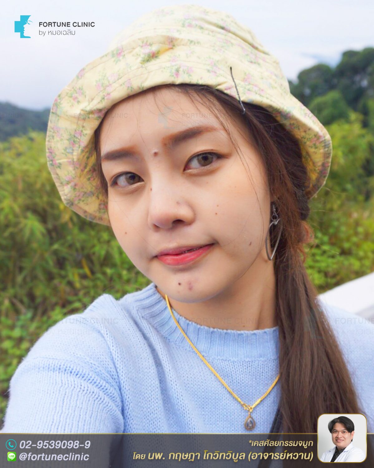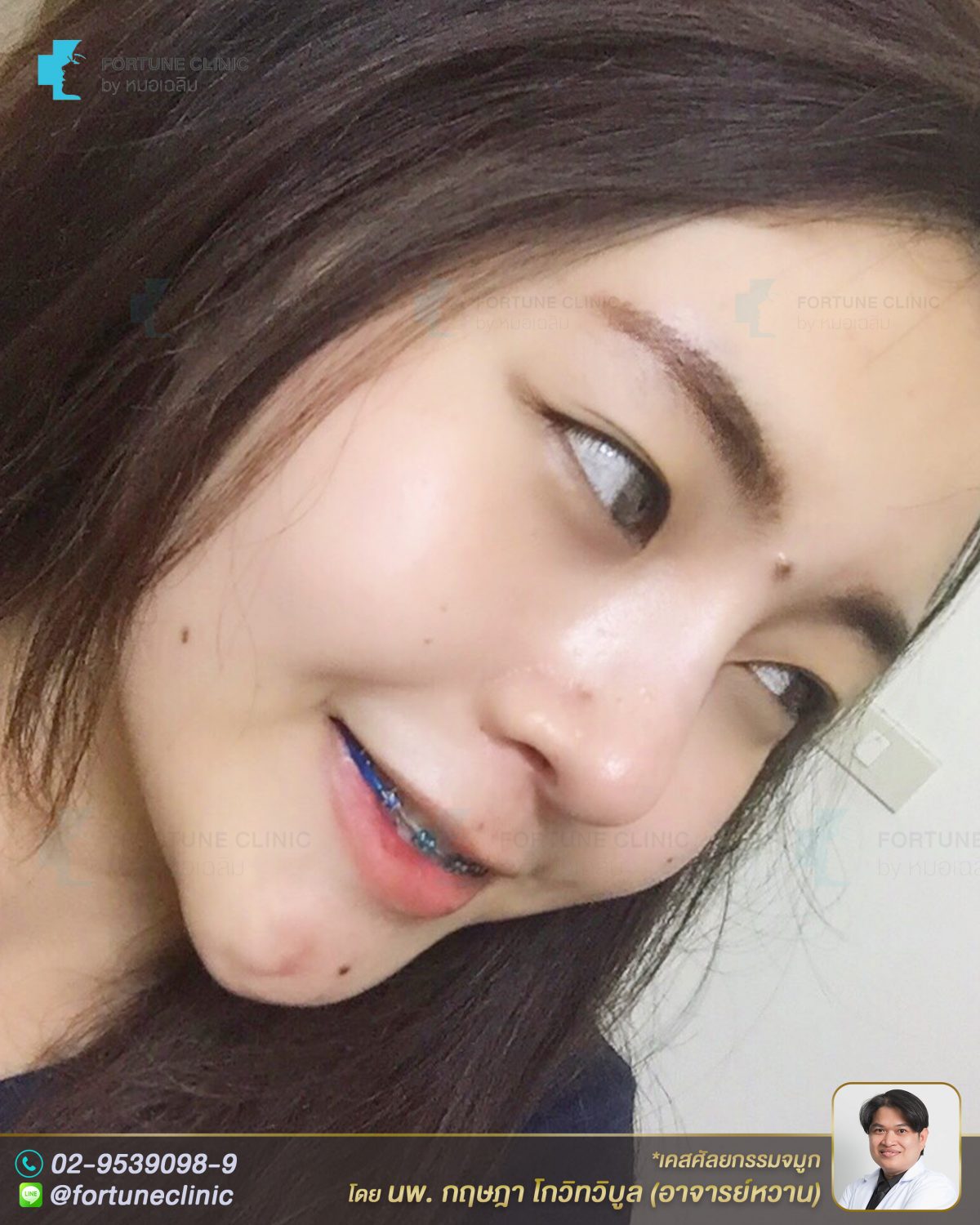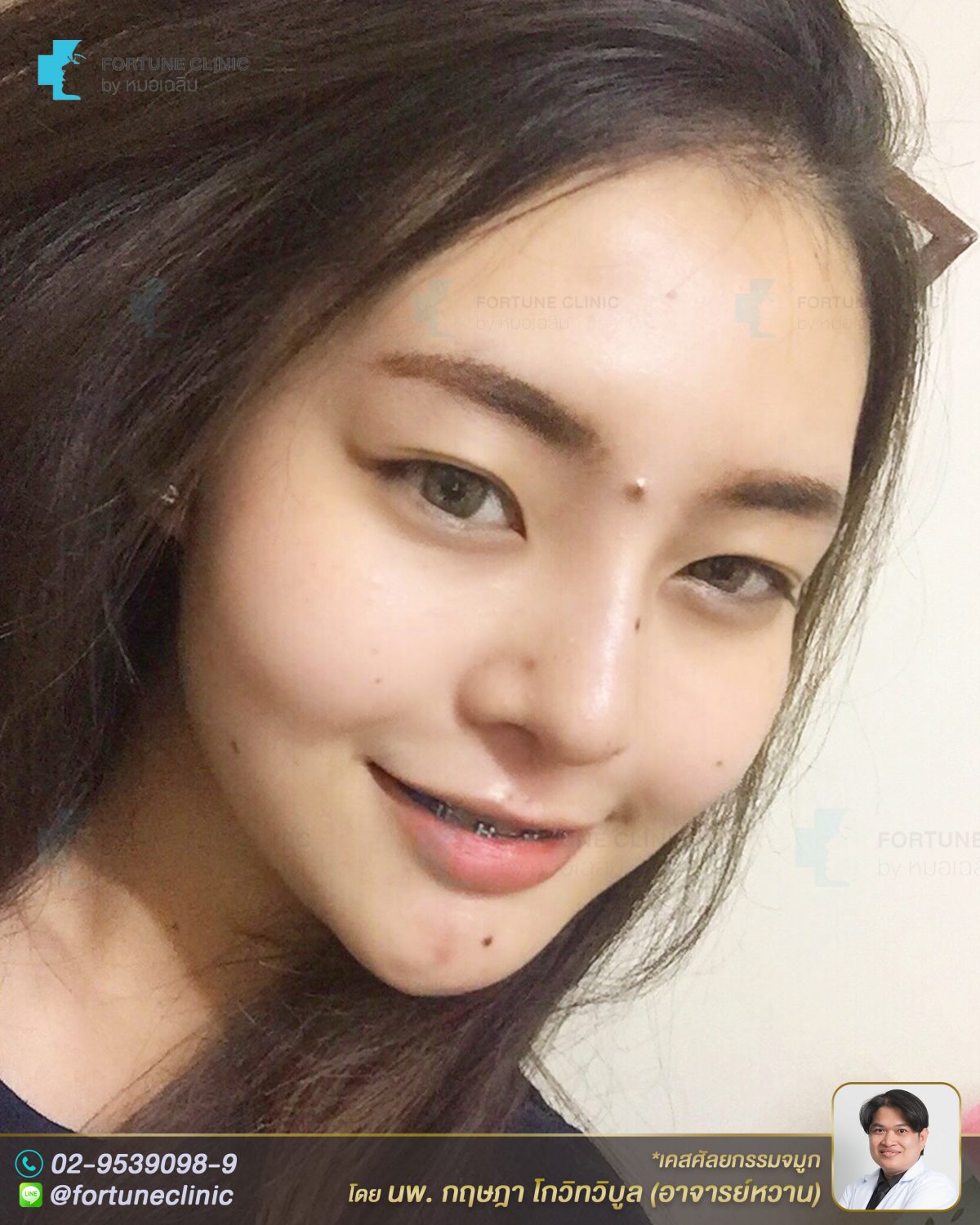 เคสคุณมิว เป็นเคสเนื้อน้อย ผิวบาง ทรงจมูกเดิมสวยอยู่แล้ว แต่สันจมูกช่วงหัวตาค่อนข้างน้อย ทำให้ดูไม่มีมิติค่า