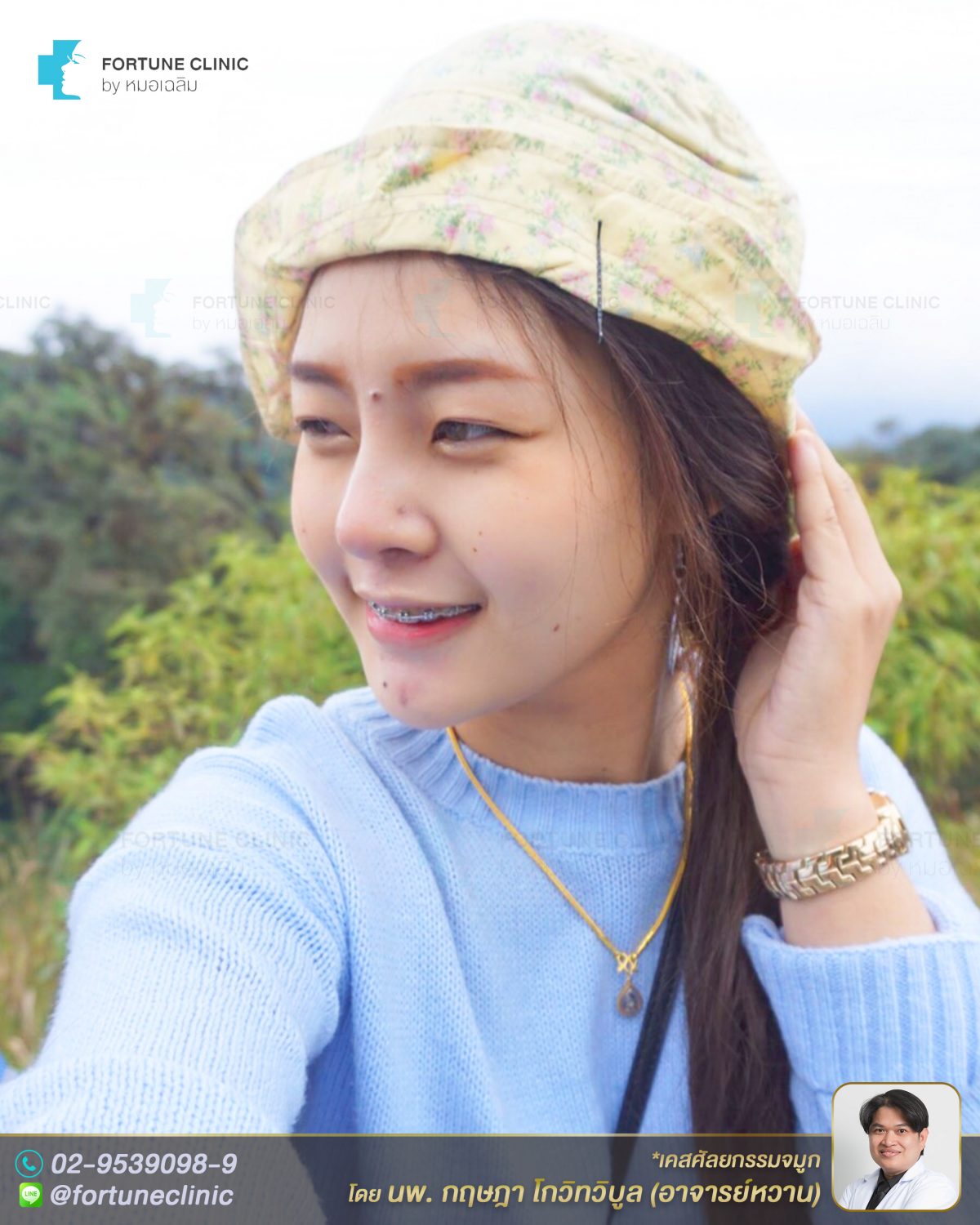 หลังเสริมคุณมิวดูสวยขึ้นมาก สันจมูกโด่งและเรียวสวย มีปลายพุ่งมากขึ้น ยาวขึ้นและมนสวย สันช่วงหัวตาเนียนมาก ทรงรับรูปหน้า ดูธรรมชาติ คุณมิวบอกว่าเพื่อนๆและคนรอบข้างทักว่าสวยขึ้นและทรงจมูกสวยมาก น่าปลื้มสุดๆค่า 💕