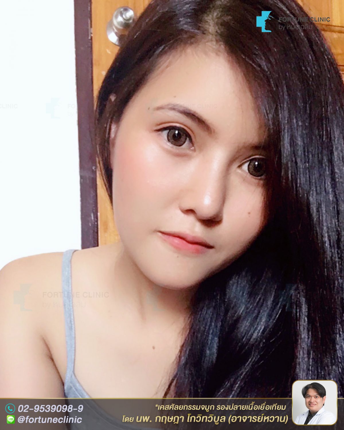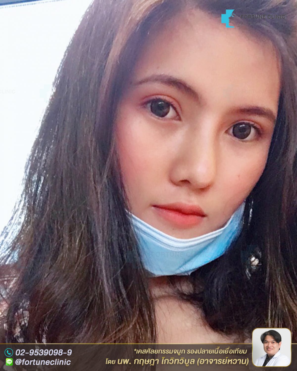 หลังเสริม คนไข้ดูสวยหวาน ละมุนขึ้น ดูเด็กลงมาก รูปหน้าดูอ่อนหวาน ละมุนขึ้น จมูกทรงสวย เรียวเล็ก