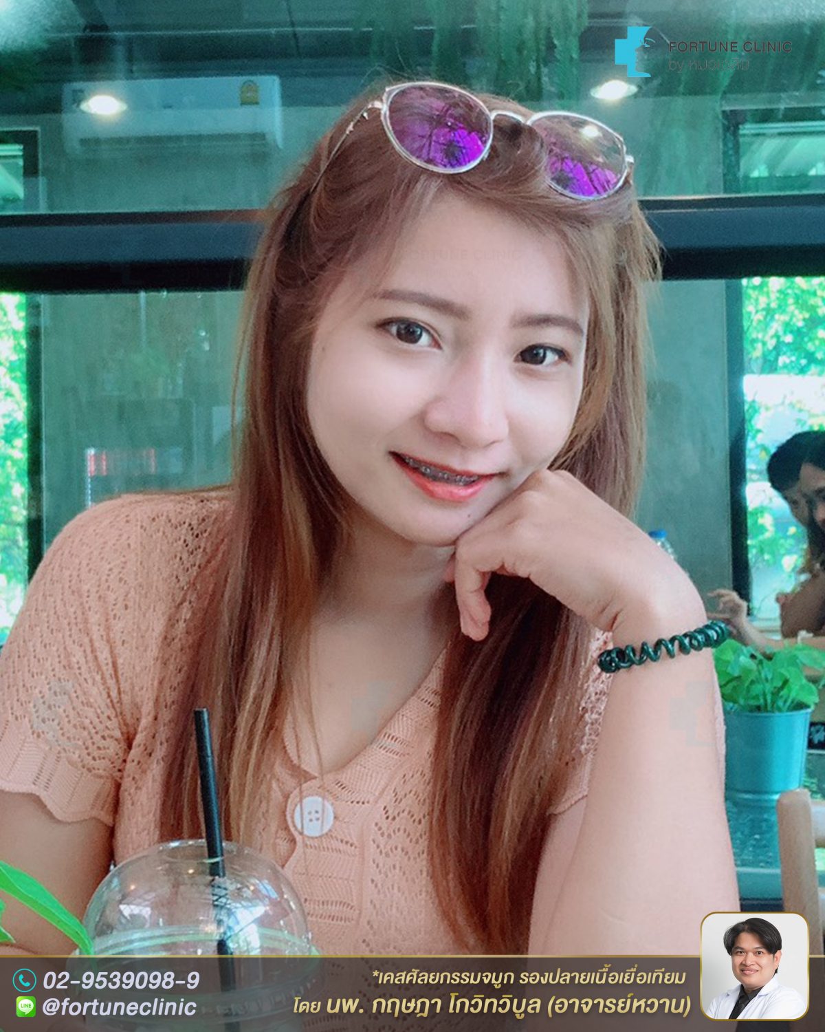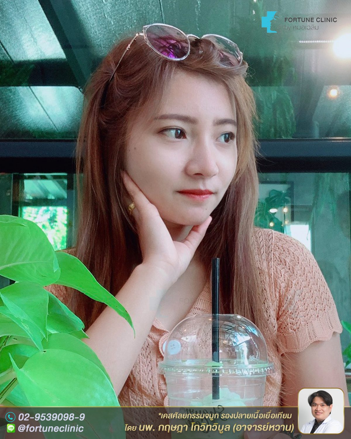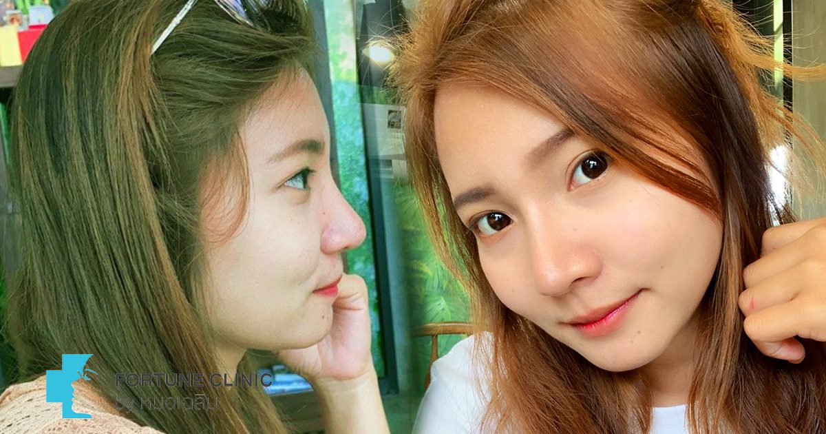 หลังเสริมจมูก รูปหน้าเรียวสวยมีมิติมากขึ้น โด่งสวยและเนียนเป็นธรรมชาติ ทรงจมูกดูยาวขึ้น เรียวเล็กลง ปลายจมูกสวยเนียน มิติพุ่งขึ้นไม่ดูงุ้มแล้วค่า ปีกจมูกดูเรียวเล็กลงโดยไม่ต้องตัดปีกเลยค่า