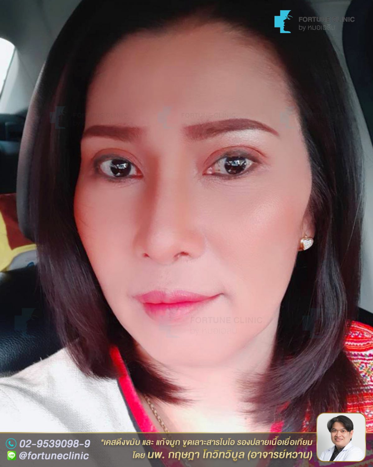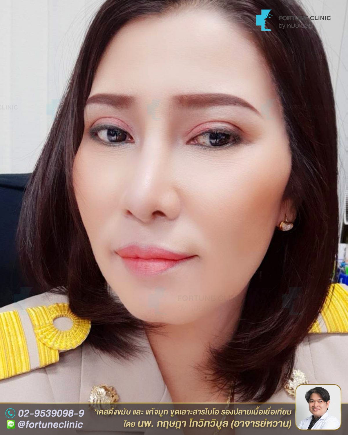 หลังแก้คนไข้ดูสวยเนียนเป็นธรรมชาติขึ้นมาก ดีขึ้นมากค่า สันจมูกตรงสวยโด่งเนียนเป็นสัดส่วนที่เหมาะสม ไม่โก่งงุ้มเป็นก้อนแล้วค่า รูปหน้าสวยสมดุลขึ้น และดูอ่อนวัยลงมากด้วยค่า
