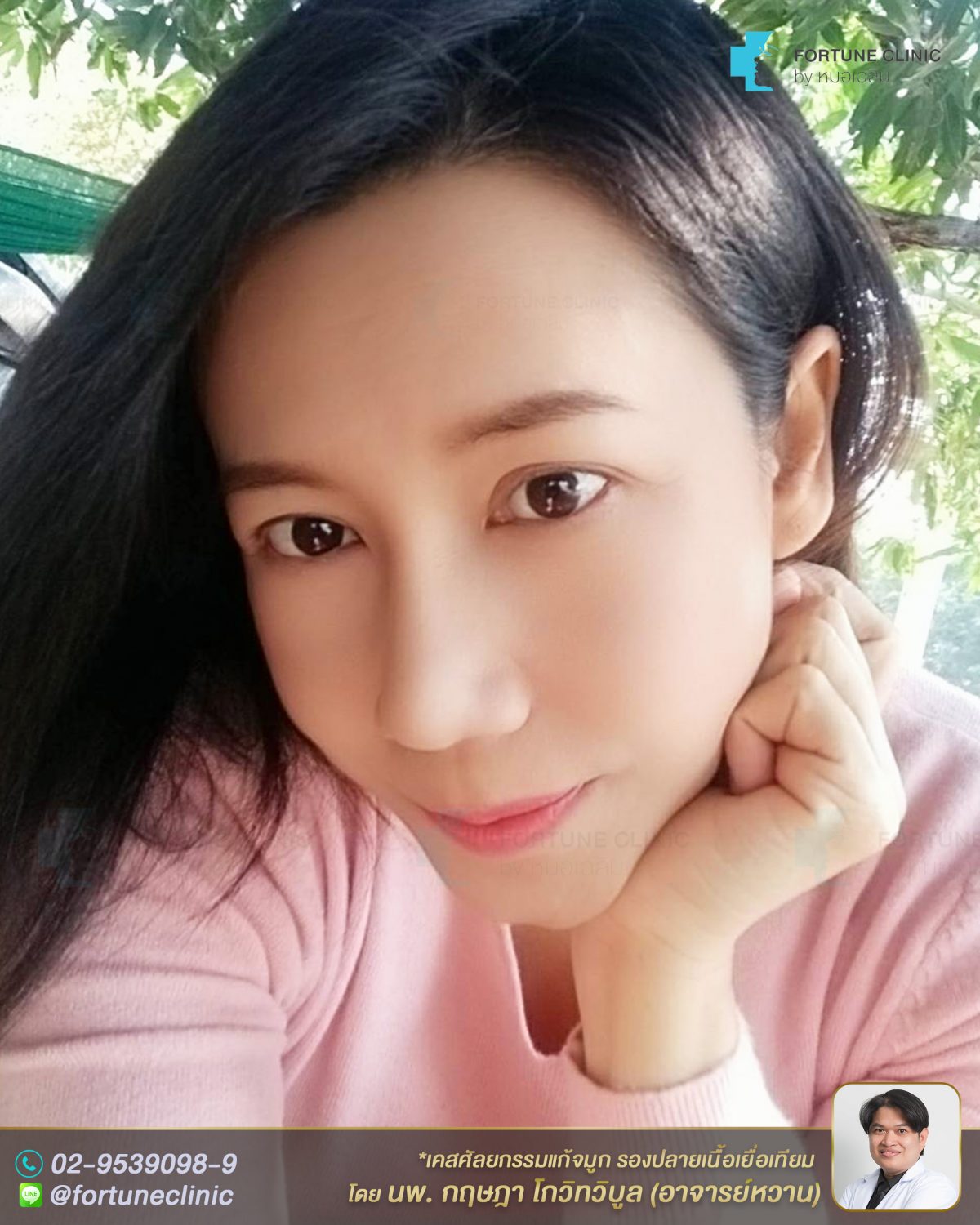 หลังแก้จมูก คนไข้หน้าเปลี่ยนเด็กลงมาก จมูกสวยเนียนขึ้น ดูเป็นธรรมชาติ รูปหน้ามีมิติสวยขึ้น อ่อนเยาว์ลง สันจมูกดูเรียบเนียน ปลายจมูกยาวขึ้นและเรียวเล็กลง หน้าหวานขึ้น ปีกจมูกเรียวสวยขึ้นทั้งที่ไม่ได้ตัดปีกเลยค่า