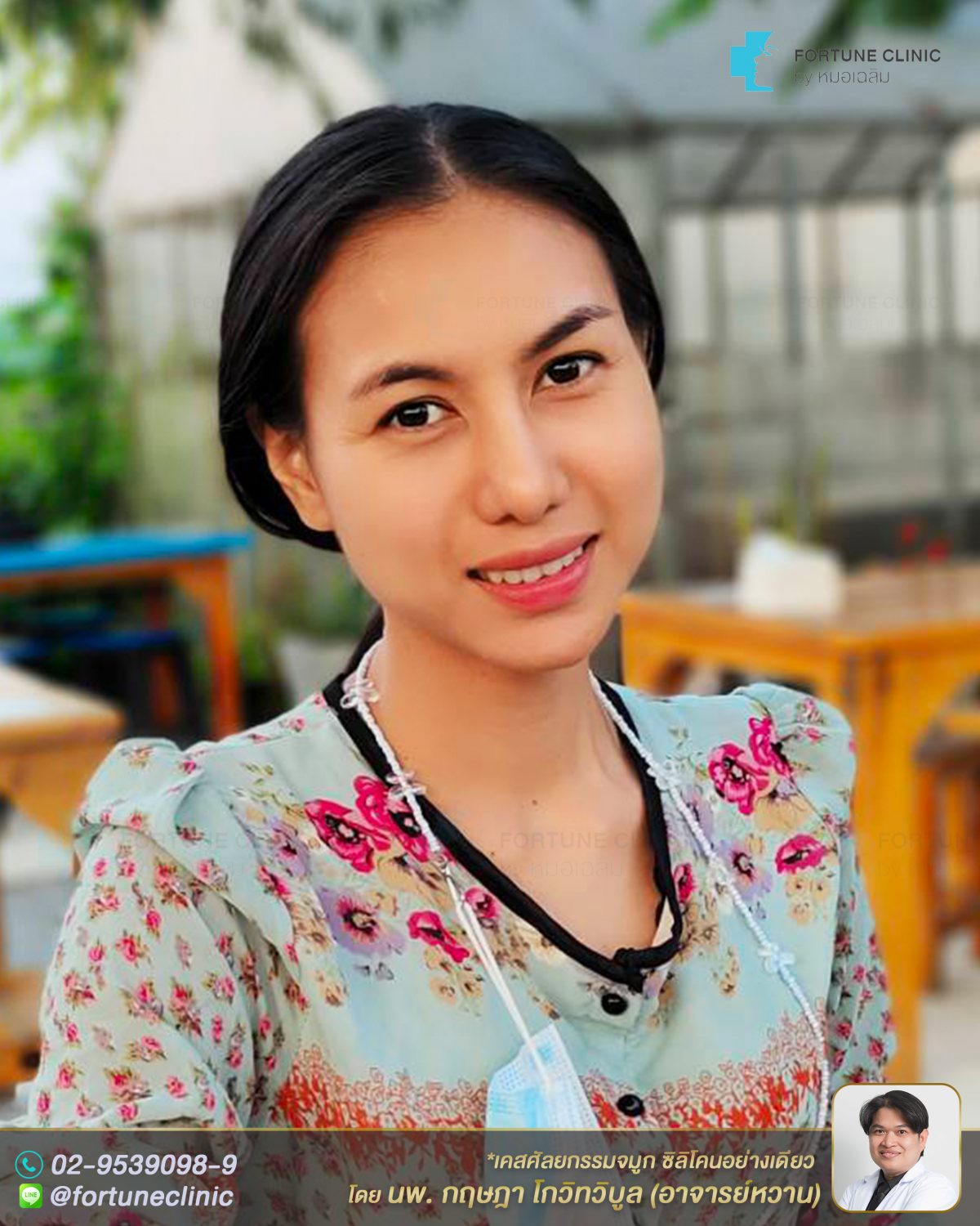 หมอหวานเสริมด้วยซิลิโคนอย่างเดียว เหลาแต่งซิลิโคนให้รับกับฐานกระดูก เสริมซิลิโคนบางๆเพื่อให้มิติมันจมูกดูคมชัดสวยขึ้น เสริมยกปลายเพื่อให้มิติปลายจมูกพุ่งสวยขึ้น เป็นธรรมชาติ และ วางซิลิโคนใต้เยื่อหุ้มกระดูกเพื่อความสวยเนียนหลังเสริม