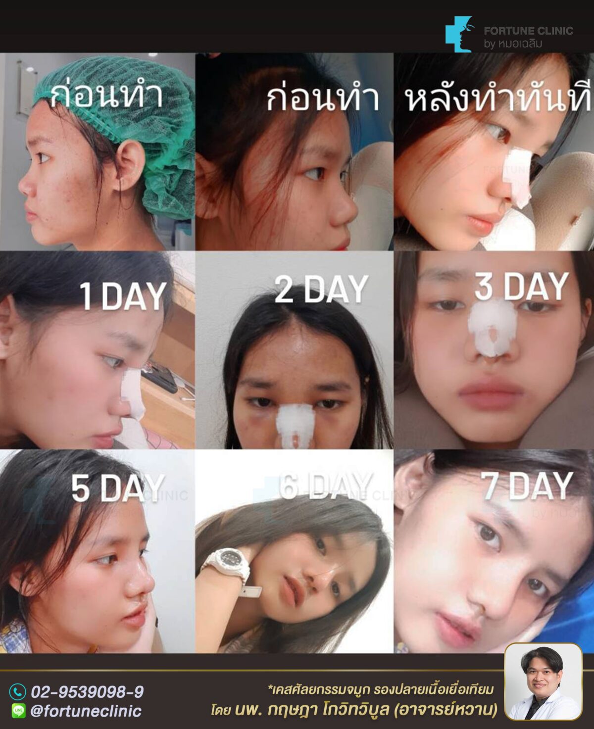เสริมจมูก 7 วัน ทรงสวยมาแล้ววว หน้าสวยคมมีมิติขึ้นอย่างเห็นได้ชัด ดูเป็นธรรมชาติและบวมน้อยมากค่า (จมูก)