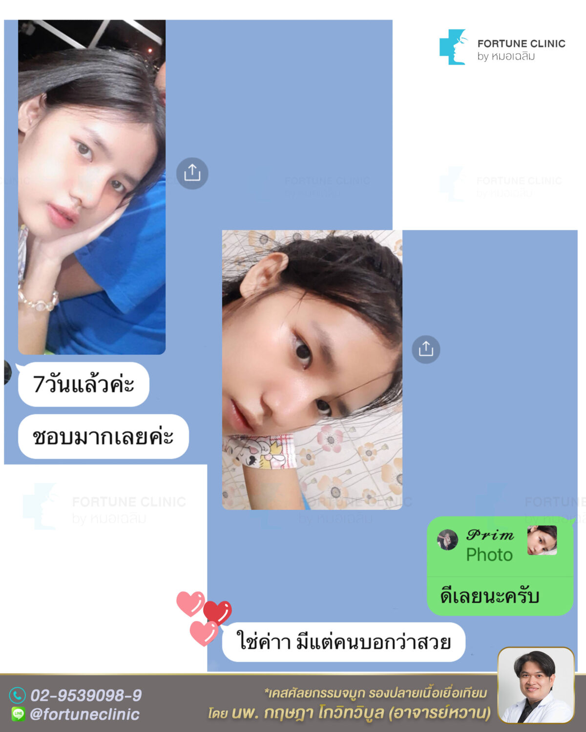 หลังเสริม 7 วัน สวยมีมิติขึ้นอย่างเห็นได้ชัด แม้จะยังไม่ยุบบวมดี จมูกดูเรียวเล็กลง เป็นสโลปปลายพุ่งสวย เนียนเป็นธรรมชาติ จมูกดูเรียวยาวขึ้น  ปลายเรียวเล็กพุ่งมีมิติ ปลายจมูกยาวขึ้น  ปีกหุบกระชับสวยขึ้นโดยไม่ต้องตัดปีกเลยค่า หน้าหวานและดูสดใสขึ้นมากค่า รอยุบอีกหน่อยแล้วมาดูกันค่า