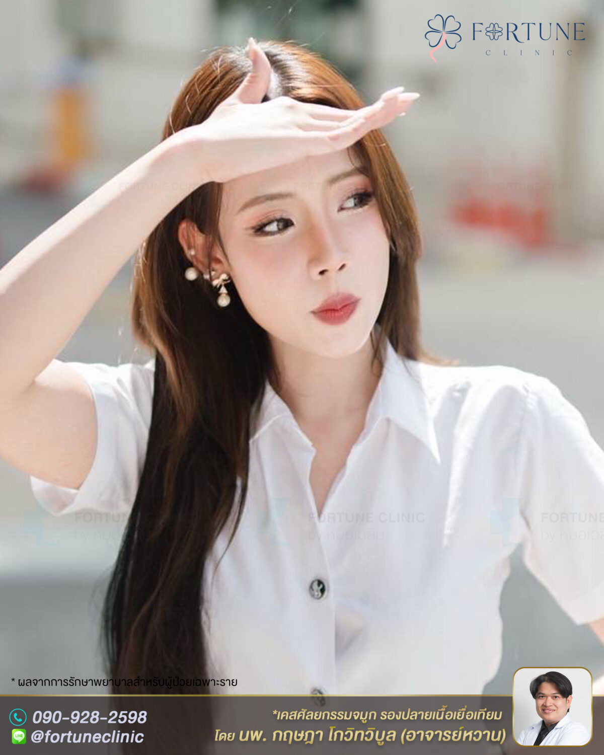 – หมอหวานเสริมด้วยซิลิโคนเหลาใหม่เคสต่อเคส ออกแบบให้ทรงเป็นธรรมชาติ เสริมให้หัวตาโด่งขึ้น ไล่ทรงเรียวและยกปลายพุ่ง แล้ววางซิลิโคนชั้นใต้เยื่อหุ้มกระดูกเพื่อความสวยเนียนหลังเสริม